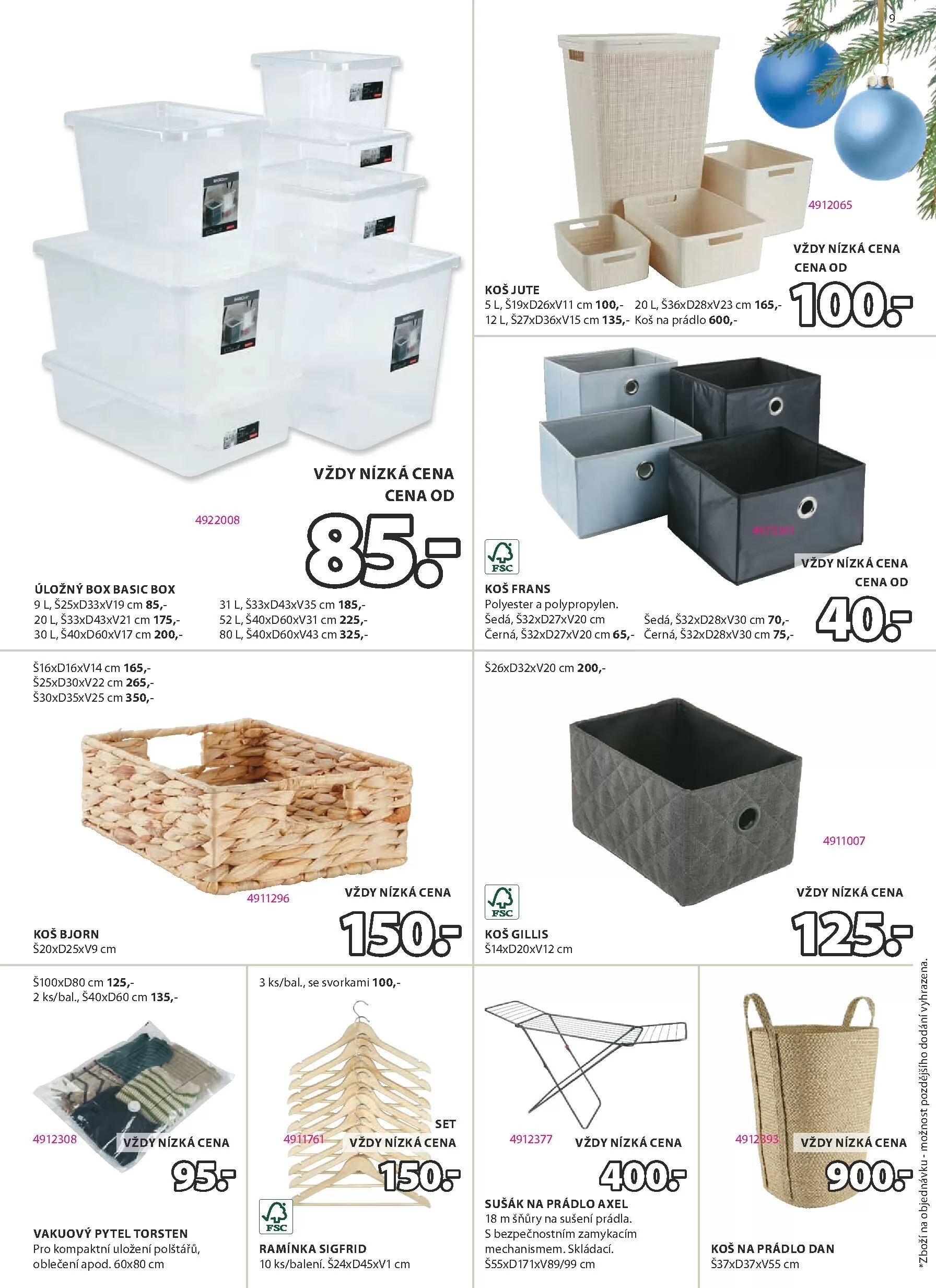 Mezi nimi jsou úložné boxy v různých velikostech, například 9 l za 85,- nebo 30 l za 200,-.
