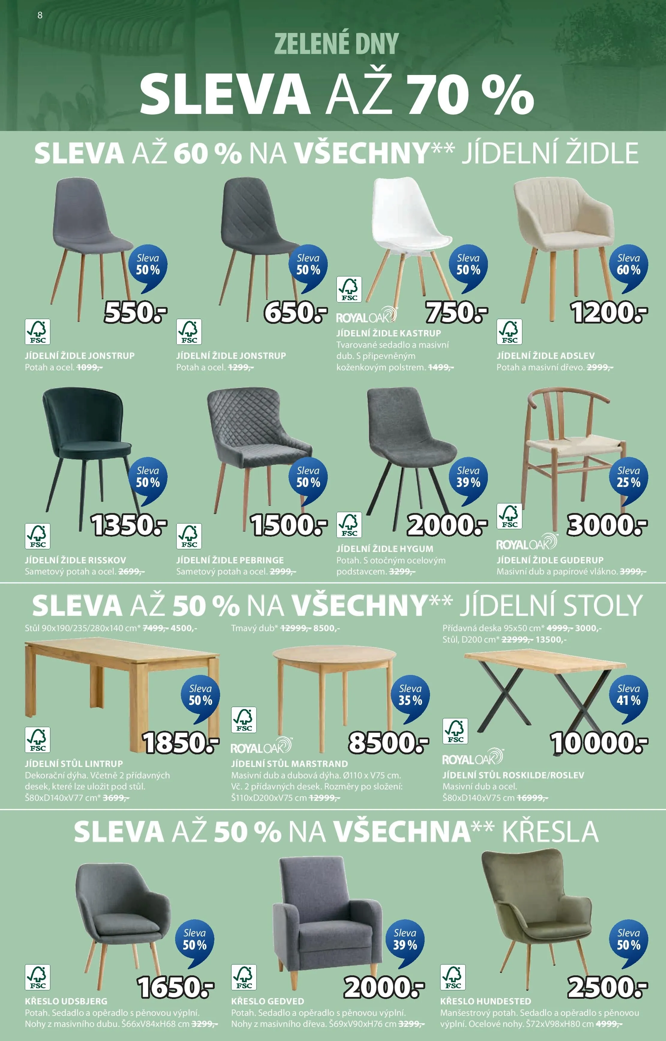 V letáku obchodu Jysk najdete skvělé nabídky na jídelní židle a stoly.