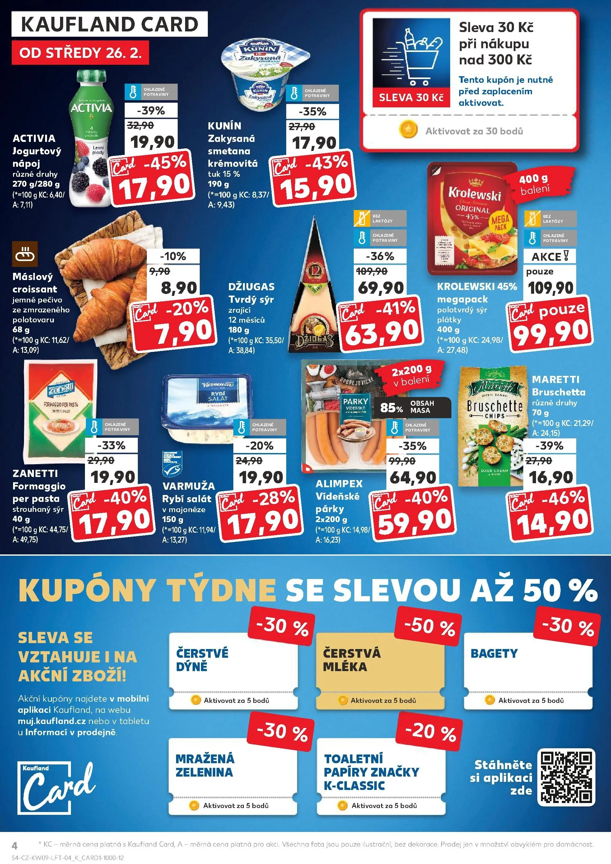 Nezapomeňte také na rybí salát Varmuža v majonéze a vídeňské párky Alimpex. V letáku najdete i akční kupóny se slevou až 50 %, které můžete aktivovat v mobilní aplikaci Kaufland nebo na webu.