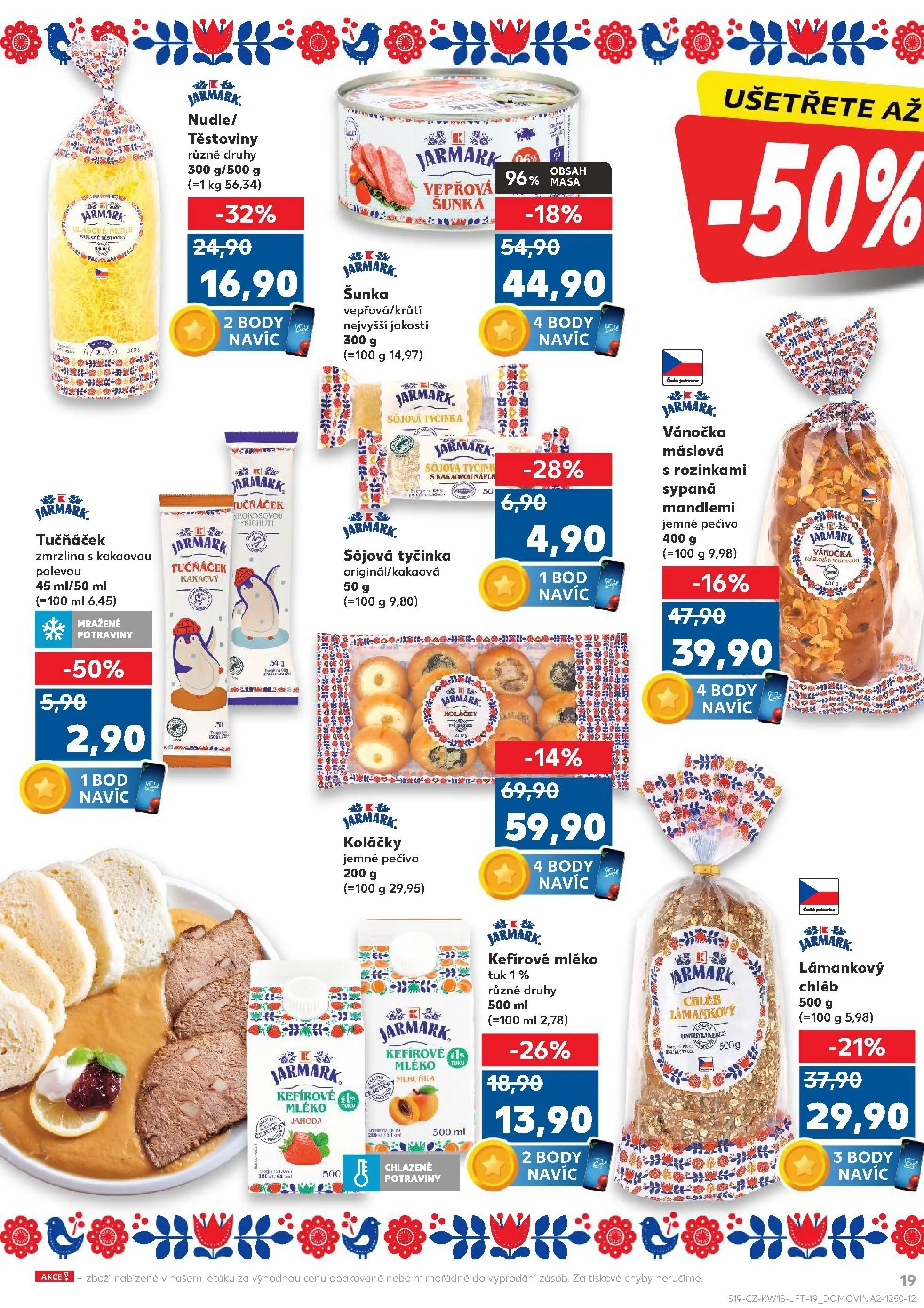 V letáku obchodu Kaufland najdete širokou nabídku potravin za skvělé ceny. Mezi akčními produkty se objevují tvarohy značky Olma a Madeta, které jsou k dostání s výraznými slevami až 45%. Například polotučný tvaroh Olma (250 g) nyní za 19,90 Kč.