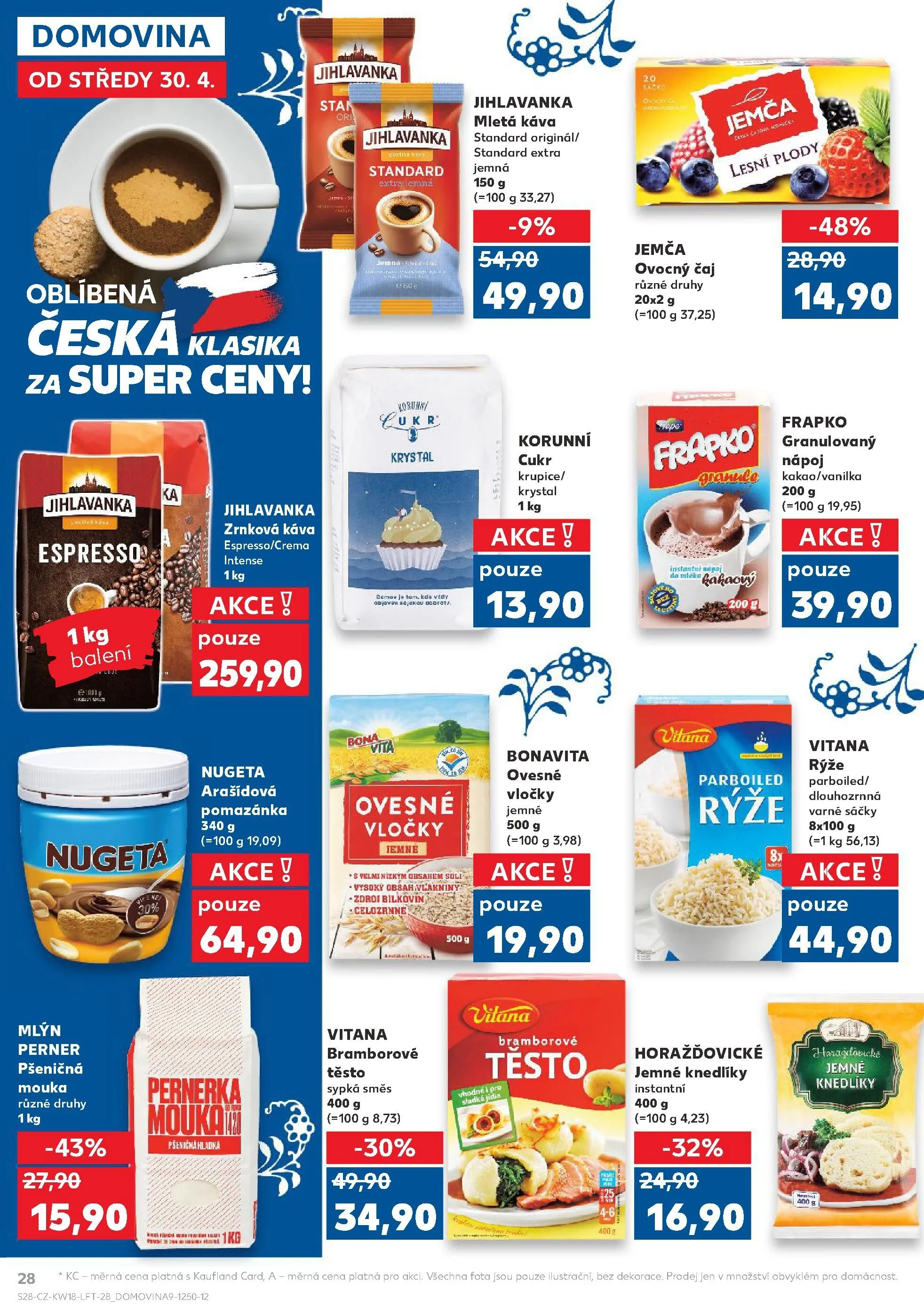 V letáku obchodu Kaufland najdete širokou nabídku trvanlivých potravin, které potěší každého gurmána. Od středy 30.4. si můžete vychutnat produkty značky Maggi, které se vyznačují vynikající chutí a jednoduchou přípravou. Například vařivá polévka různých druhů je nyní za skvělou cenu 13,90 Kč.