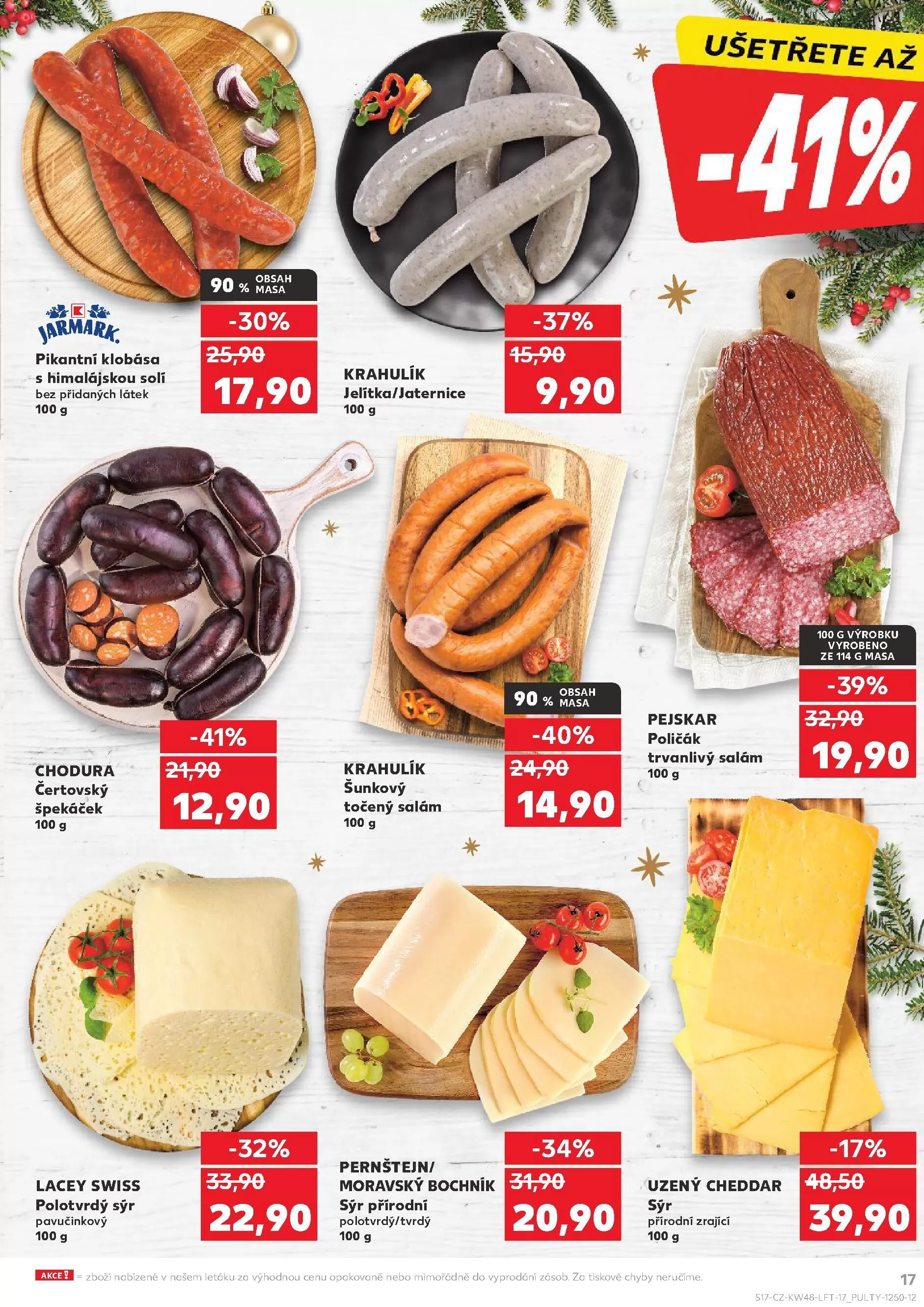 V letáku obchodu Kaufland najdete širokou nabídku kvalitních masných výrobků a delikates. Mezi nimi se objevují: