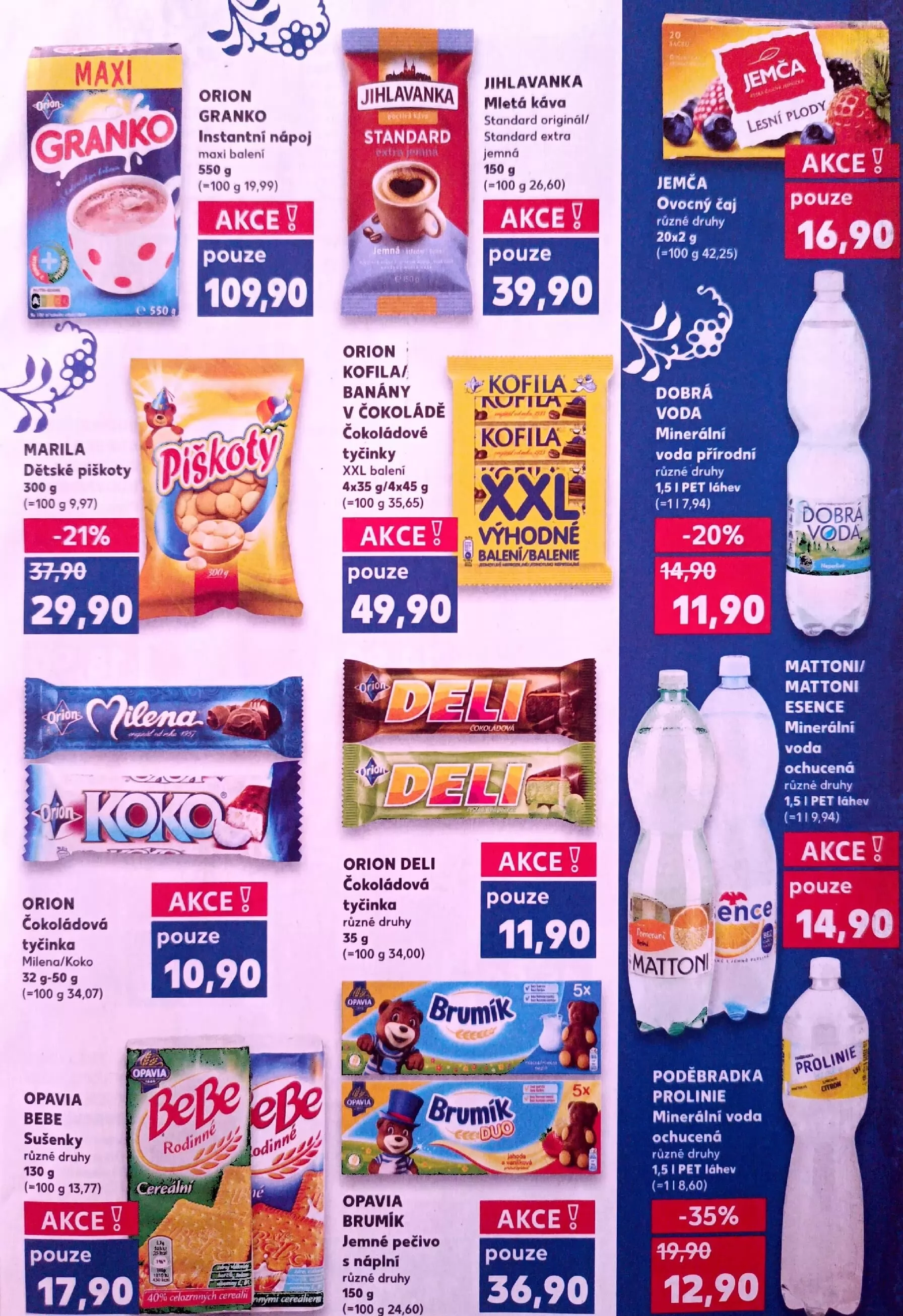 V letáku obchodu Kaufland najdete širokou nabídku produktů za skvělé ceny. Například dětské piškoty Marila 300 g jsou nyní za 29,90 Kč, což představuje slevu 21%. Instantní nápoj Granko 550 g je v akci za 109,90 Kč.