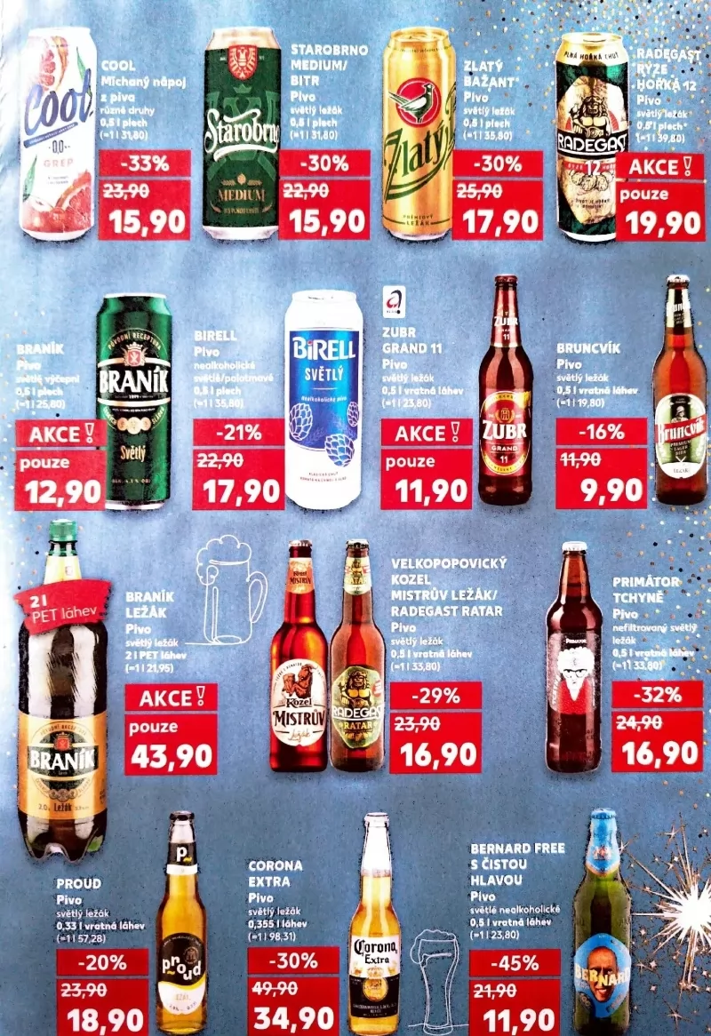 V letáku obchodu Kaufland najdete širokou nabídku piva za skvělé ceny!