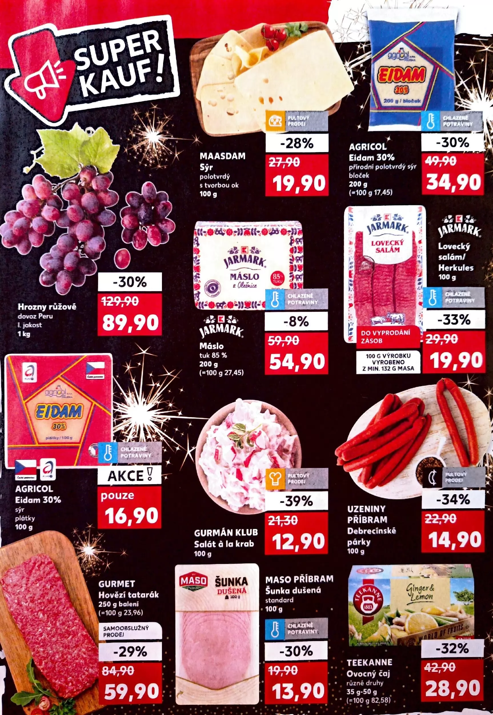 V letáku obchodu Kaufland najdete širokou nabídku kvalitních produktů za skvělé ceny. Mezi nimi je polotvrdý sýr Maasdam s tvorbou ok, který je nyní k dostání za 19,90 Kč (sleva 28 %). Dále si můžete pořídit eidam v přírodním plátku od značky Agricol, který je v akci za 16,90 Kč.