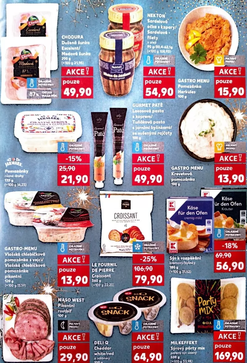 V letáku obchodu Kaufland najdete skvělé akční nabídky na různé produkty. Například medové produkty jsou nyní za cenu 49,90 Kč, s 15% slevou. Pikantní rostbíf můžete zakoupit za 29,90 Kč. Pro milovníky ryb jsou k dispozici sardelové filety v oleji za 54,90 Kč.