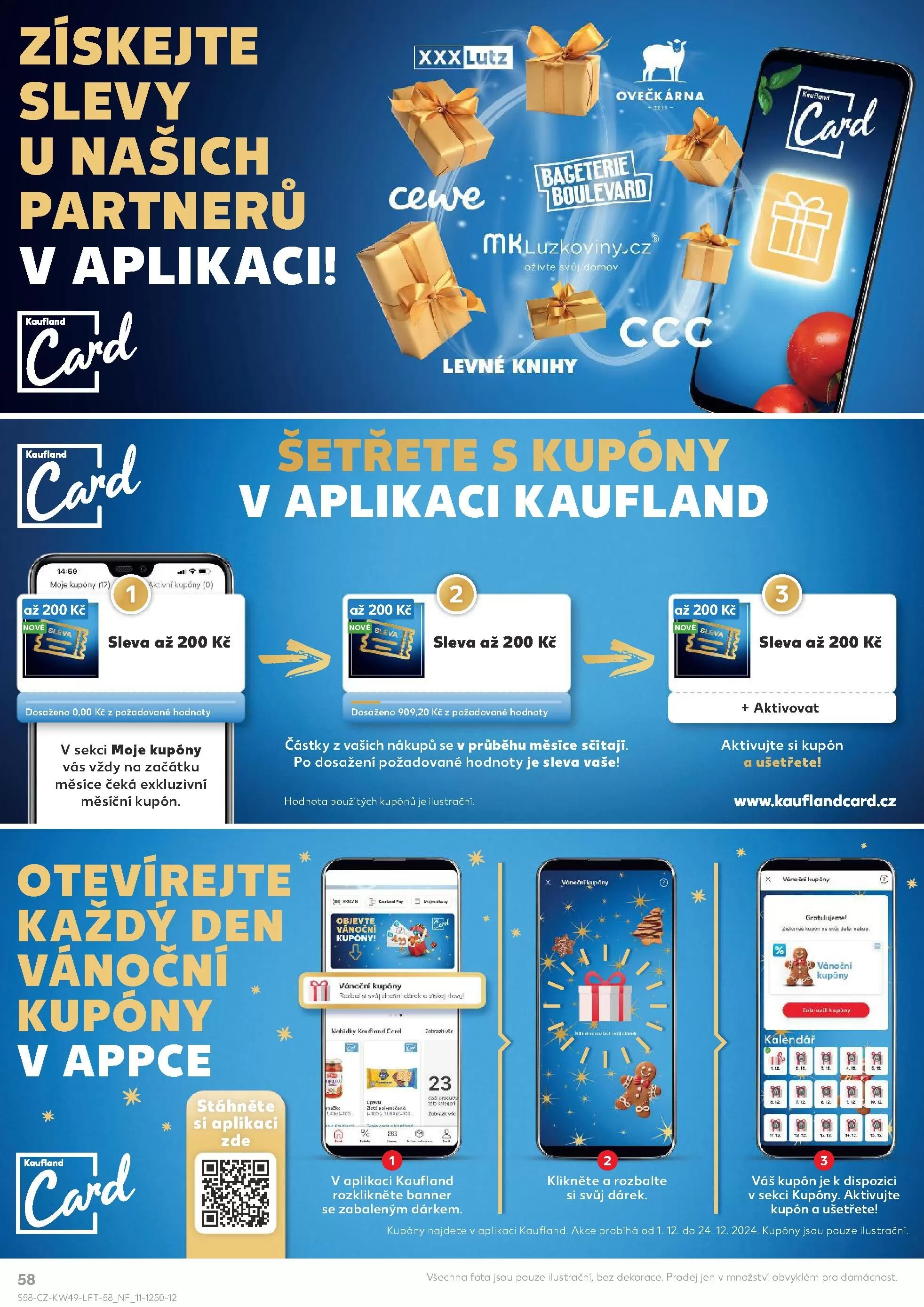 Objevte vánoční kupóny v aplikaci Kaufland! Rozklikněte banner se zabaleným dárkem a aktivujte si svůj kupón, abyste ušetřili. Akce probíhá od 1. 12. do 24. 12. 2024. Nezapomeňte, že všechny fotografie jsou ilustrační a prodej je pouze v množství obvyklém pro domácnost.