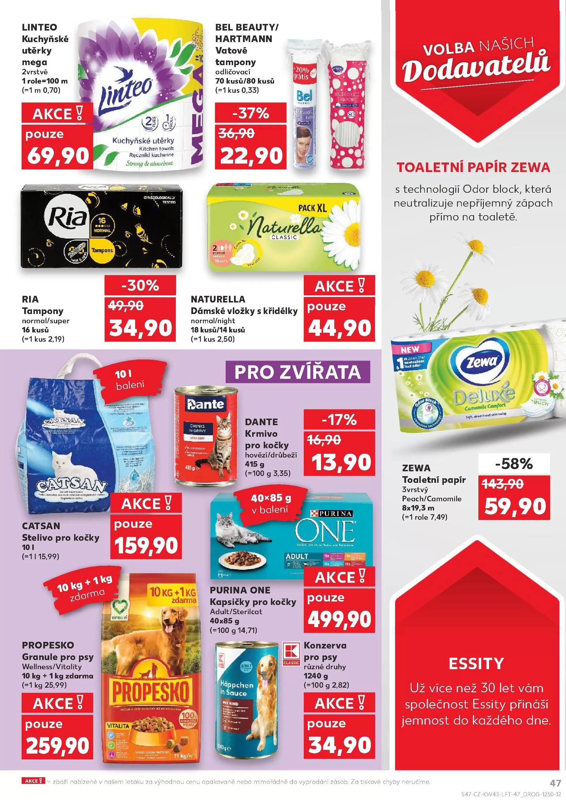 Pro vaše mazlíčky máme krmivo pro kočky Purina a granule pro psy Propesko, které nyní zakoupíte s 1 kg zdarma. Toaletní papír Zewa s technologií odor block je k dispozici za 59,90 Kč. Nezapomeňte také na stelivo pro kočky Catsan a další produkty pro domácí mazlíčky.