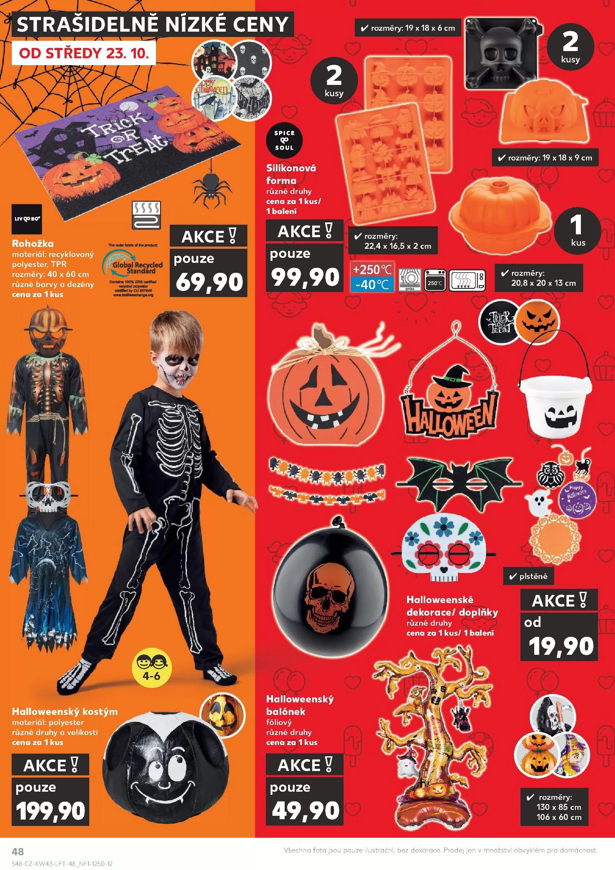 V Kauflandu začínají strašidelné nízké ceny od středy 23. 10.! Připravte se na Halloween s širokým výběrem dekorací a doplňků. Nabízíme halloweenské kostýmy z polyesteru v různých druzích a velikostech za pouhých 199,90 Kč. Nezapomeňte na halloweenské balónky, které pořídíte za 49,90 Kč.