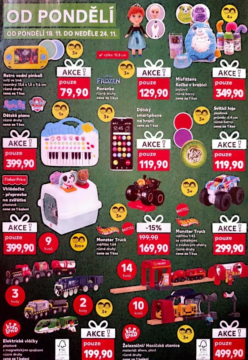 V letáku obchodu Kaufland najdete skvělé akční nabídky na širokou škálu produktů. Mezi nimi se objevují retro vodní pinball, dětské hračky a monster trucky, které jsou k dispozici za výhodné ceny. Například elektrické hračky s novými etickými spojkami jsou nyní za 79,90 Kč. Dětský smartphone na hraní můžete pořídit za 119,90 Kč.