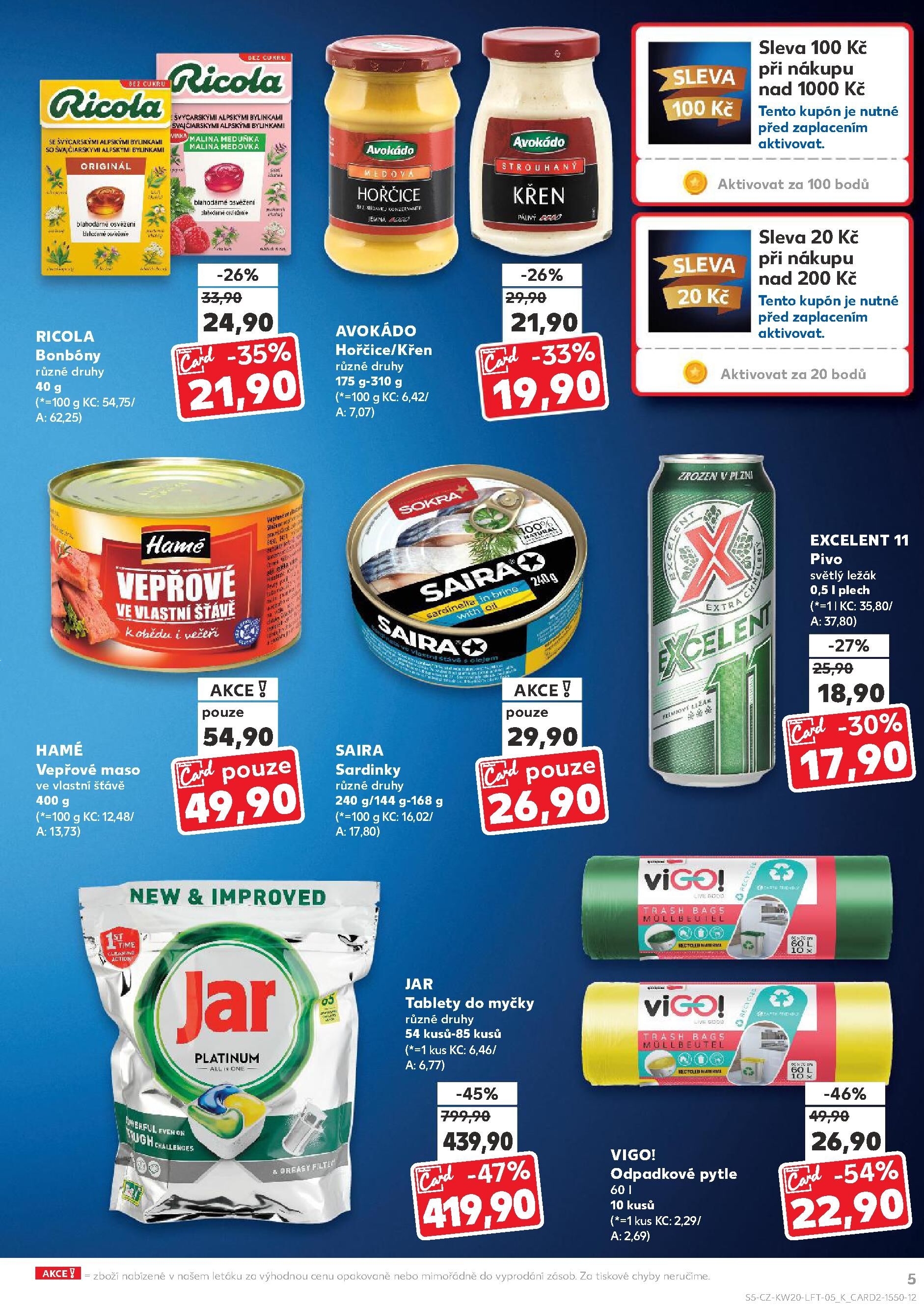 Pro milovníky sardinek jsou k dispozici různé druhy za 26,90 Kč. A pokud hledáte kvalitní tablety do myčky Jar Platinum, nyní za 439,90 Kč.