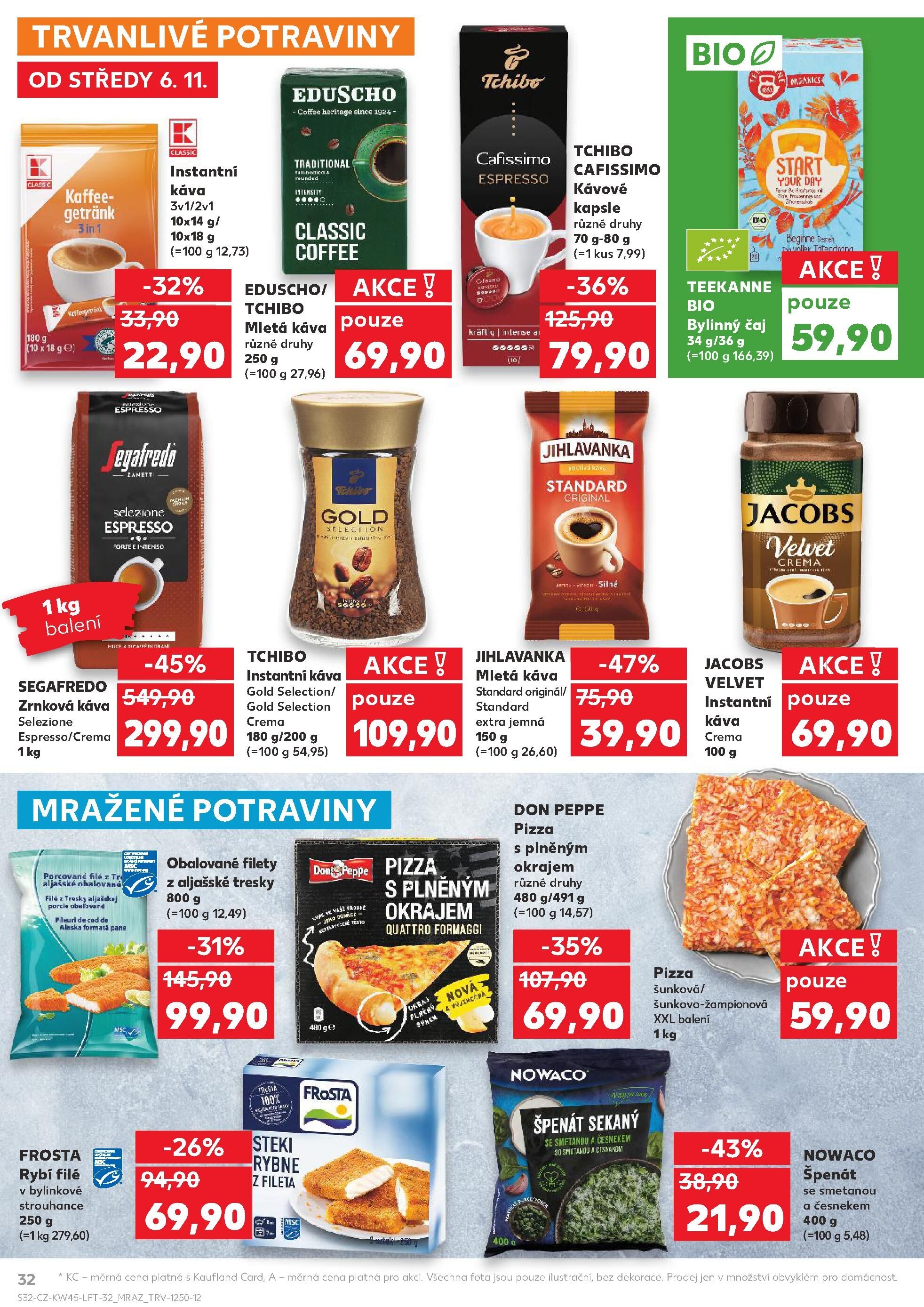 V letáku obchodu Kaufland, platném od středy 6. 11., najdete širokou nabídku trvanlivých potravin a mražených produktů.