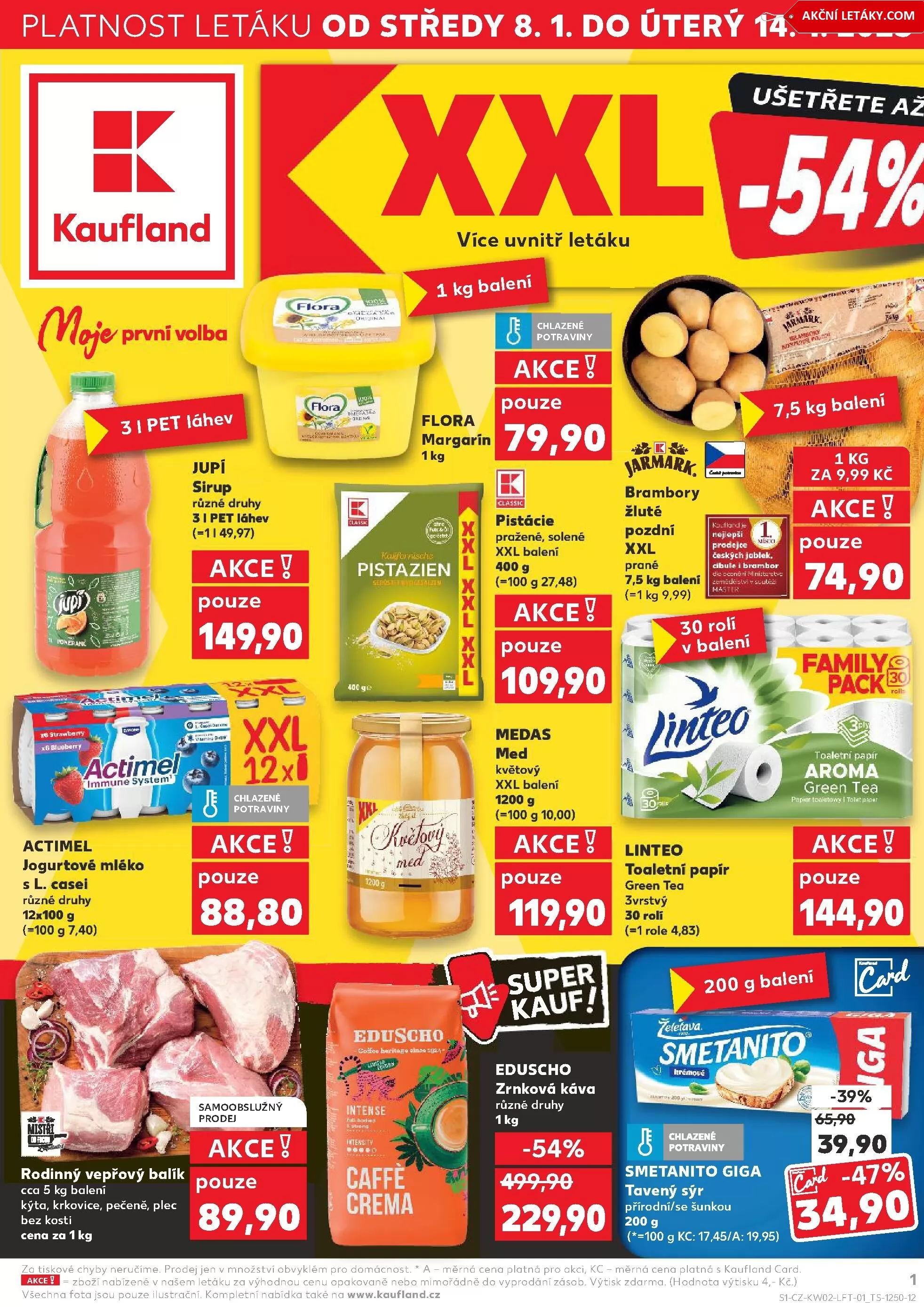 V letáku Kaufland od středy 8.1. do úterý 14.1.2025 najdete skvělé akce a slevy na široký sortiment produktů. Ušetřete až 54% na zrnkové kávě Eduscho, která je nyní za pouhých 229,90 Kč. Nezapomeňte také na akční cenu margarínu Flora za 79,90 Kč a medu květového za 119,90 Kč.