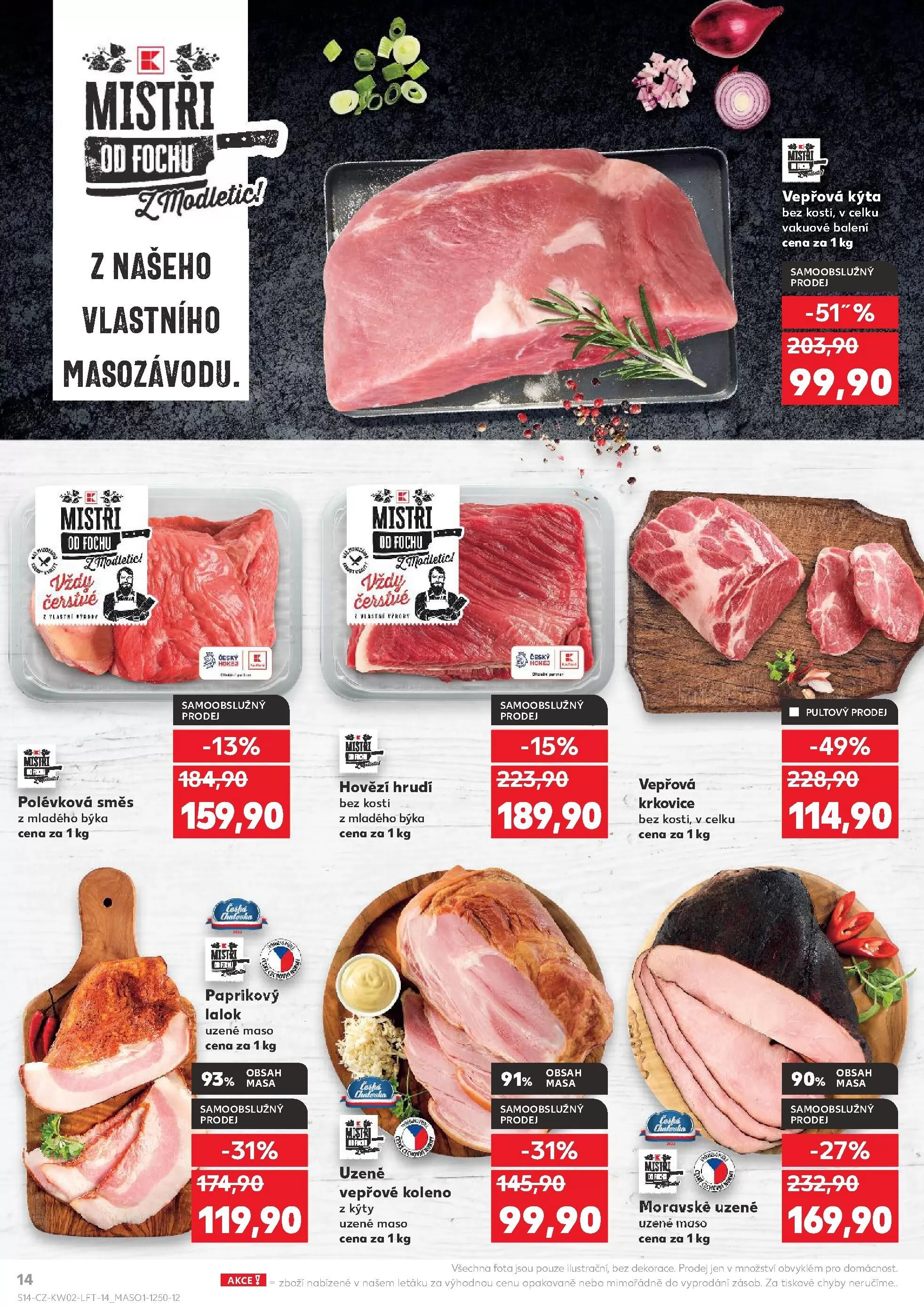 V letáku obchodu Kaufland najdete skvělé nabídky na čerstvé produkty. Od středy můžete zakoupit staroměstskou klobásu s 28% slevou za 100 g. Dále je v nabídce topinková pomazánka za 19,90 Kč a camping salát s 42% slevou za 10,90 Kč. Nezapomeňte také na pečenáče a vinohradskou šunku, která obsahuje 92% masa a je k dostání za 19,90 Kč. Uzená krkovice bez kosti s 90% obsahem masa je nyní za 22,90 Kč. Využijte těchto skvělých nabídek a dopřejte si kvalitní potraviny!