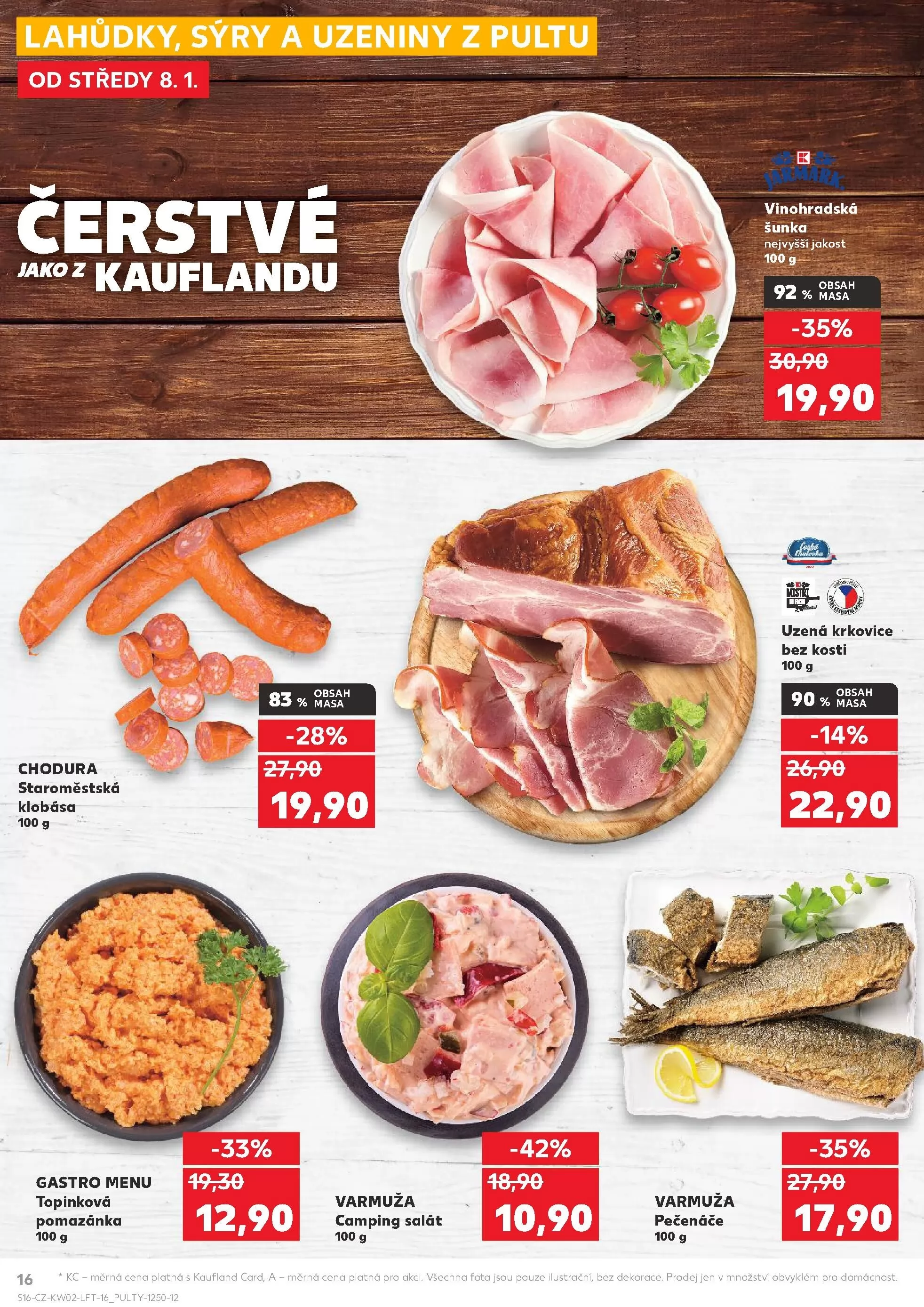 V letáku obchodu Kaufland na 21. týden, od středy 8.1., najdete skvělé akční nabídky na potraviny. Zakysaná smetana s obsahem tuku 24 % je nyní za cenu 24,90 Kč za 400 g balení. Podmáslový chléb pšeničnožitný ze zmrazeného polotovaru můžete pořídit za 39,90 Kč za 700 g.