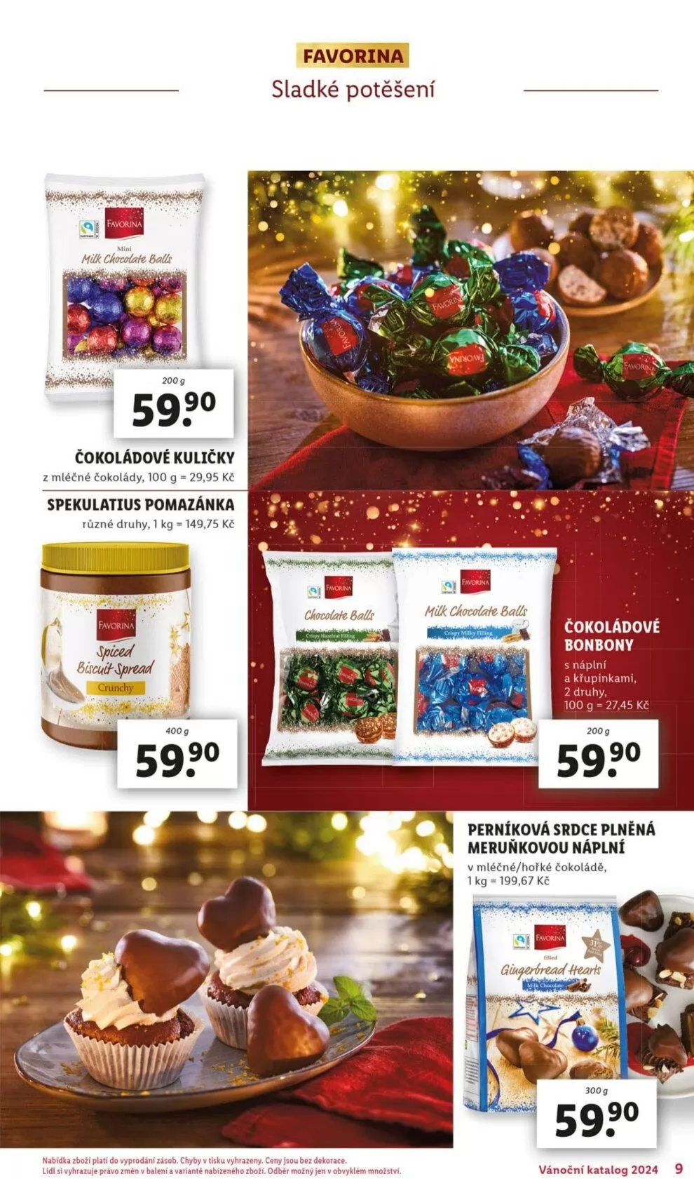 V letáku obchodu Lidl najdete širokou nabídku sladkých potěšení. Mezi nimi se objevují čokoládové kuličky z mléčné čokolády, které jsou k dostání za 29,95 Kč za 100 g. Dále si můžete vychutnat spekulatius pomazánku v různých druzích, cena za 1 kg je 149,75 Kč.
