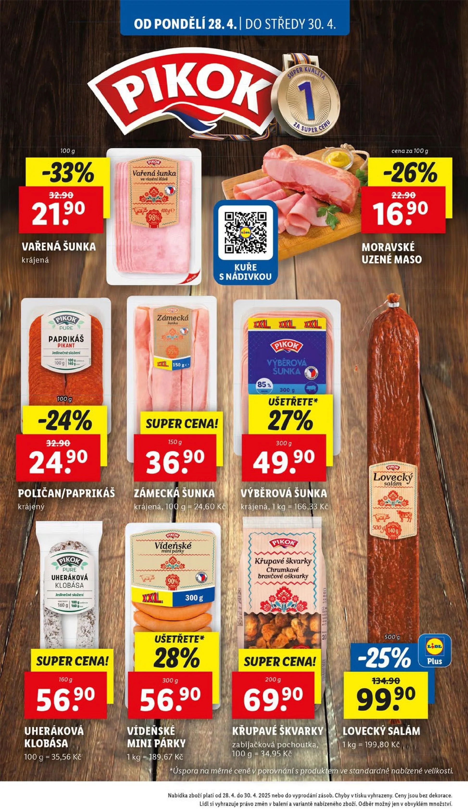 - Moravské uzené maso a lovecký salám také lákají na výhodné ceny.