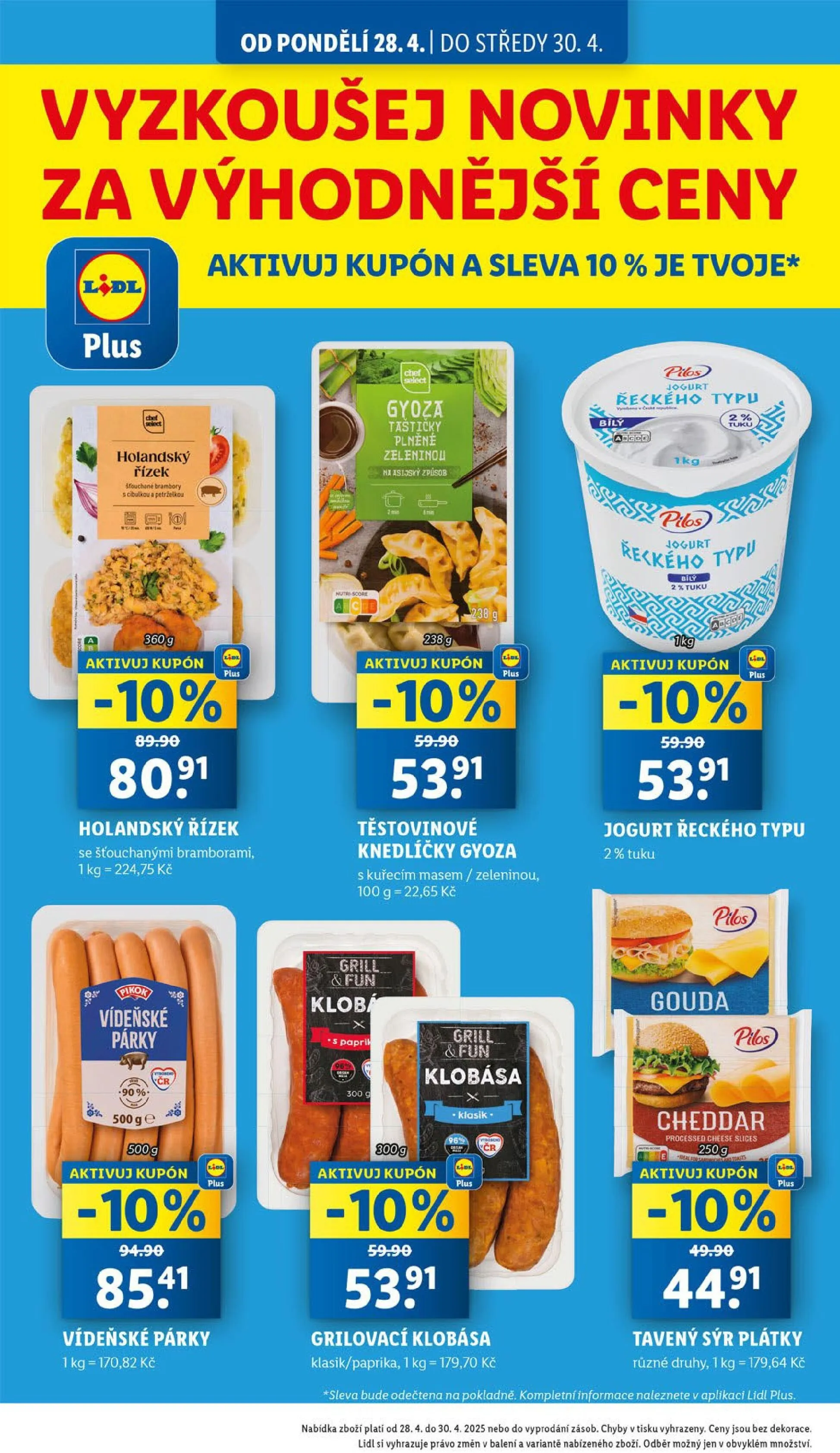Od pondělí 28.4. do středy 30.4. si můžete vyzkoušet novinky v obchodě Lidl za výhodnější ceny! Aktivujte kupón a získejte slevu 10 % na vybrané produkty.