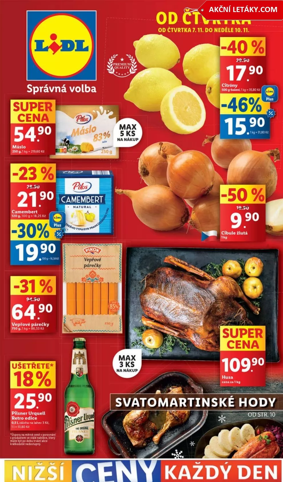 V letáku obchodu Lidl najdete širokou nabídku kvalitních produktů za skvělé ceny. Mezi nimi se objevují lahodné camemberty a vepřové párečky, které jsou ideální pro každodenní vaření. Nezapomeňte také na čerstvé citróny a žlutou cibuli, které jsou nyní v akci s výraznými slevami. Navíc si můžete vychutnat Pilsner Urquell v retro edici. Akce platí od čtvrtka 7.11. do neděle 10.11., takže neváhejte a využijte skvělé nabídky! Ušetřete s námi a dopřejte si kvalitní potraviny za výhodné ceny.