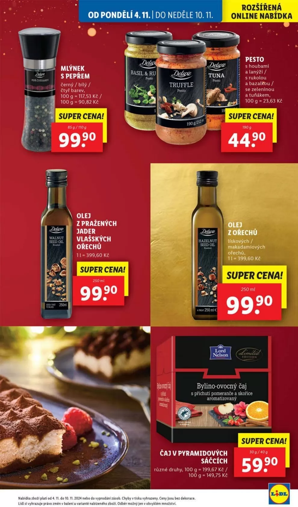 Od pondělí 4.11. do neděle 10.11. si nenechte ujít skvělé nabídky v obchodě Lidl! V letáku najdete mlýnky na pepř v černé, bílé a čtyřbarevné variantě, které jsou nyní za super cenu! Dále nabízíme olej z pražených vlašských ořechů a rozšířenou online nabídku pest s houbami a lanýži, rukolou a bazalkou, nebo se zeleninou a tuňákem.