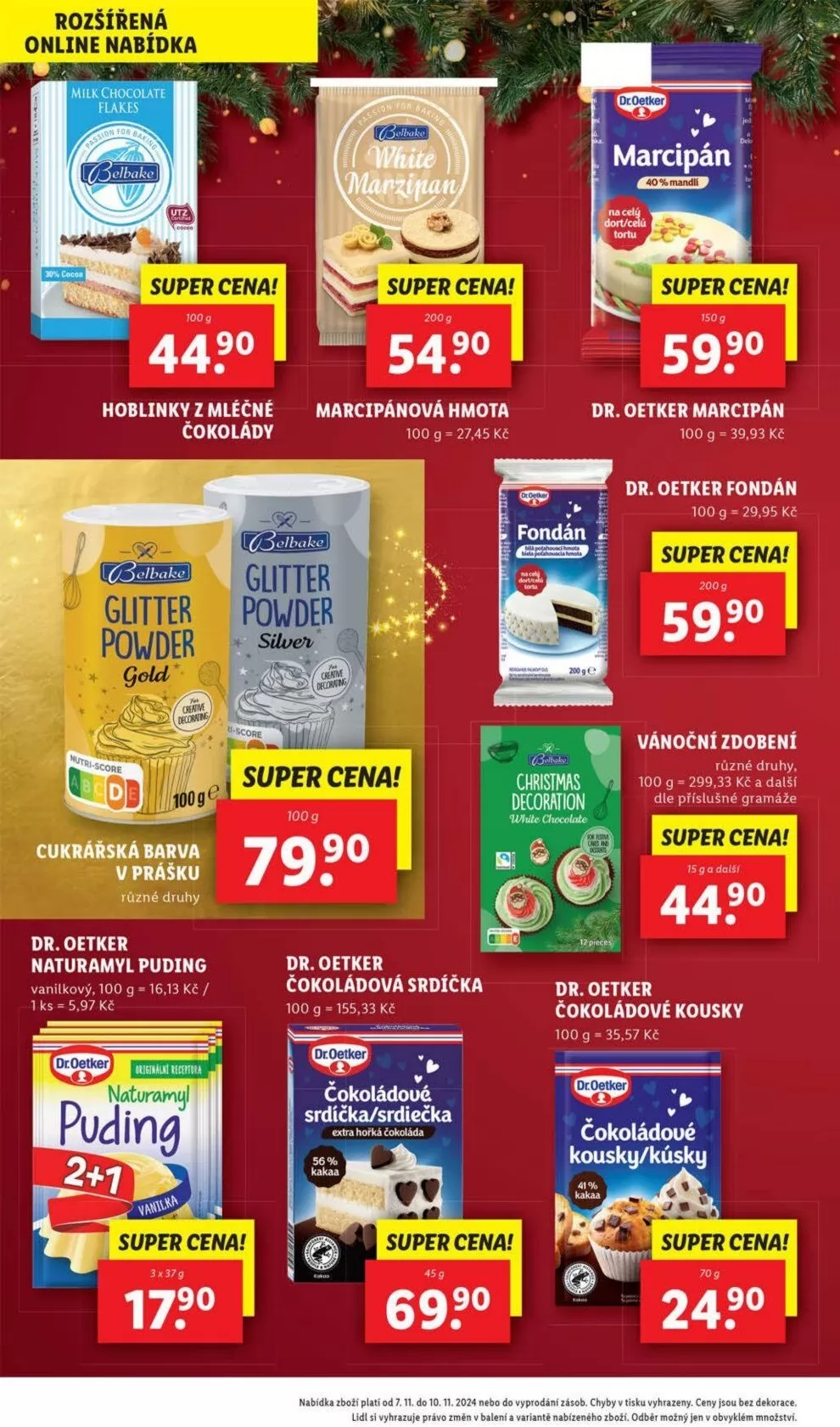 V letáku obchodu Lidl najdete širokou nabídku produktů za super ceny! Mezi nimi jsou hoblinky z mléčné čokolády a marcipánová hmota, která je ideální pro vánoční pečení. Nezapomeňte na glitter prášky v zlaté a stříbrné barvě, které skvěle ozdobí vaše cukroví.