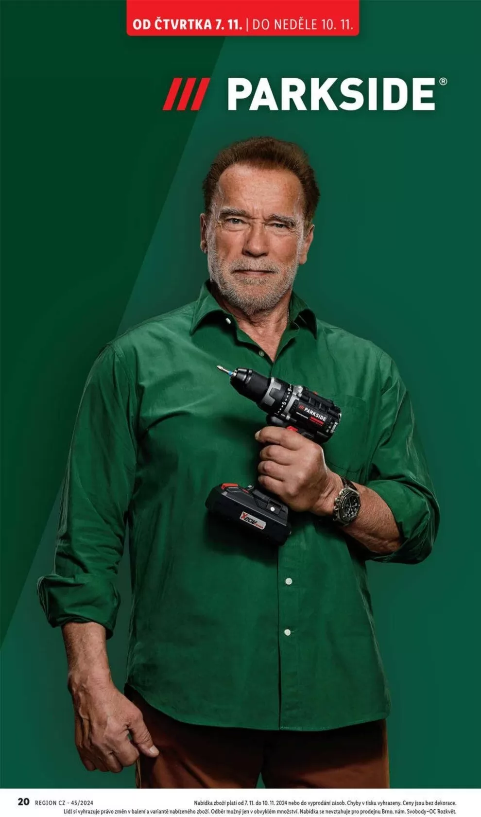 V letáku obchodu Lidl na období od 7. do 10. listopadu 2024 najdete širokou nabídku produktů značky Parkside. Připravte se na skvělé akce a slevy na nářadí a další vybavení pro kutily. Nezapomeňte, že nabídka platí do vyprodání zásob, a ceny jsou uvedeny bez dekorace. Lidl si vyhrazuje právo na změny v balení a variantách nabízeného zboží. Odběr je možný pouze v obvyklém množství a nabídka se nevztahuje na prodejnu v Brně na náměstí Svobody.
