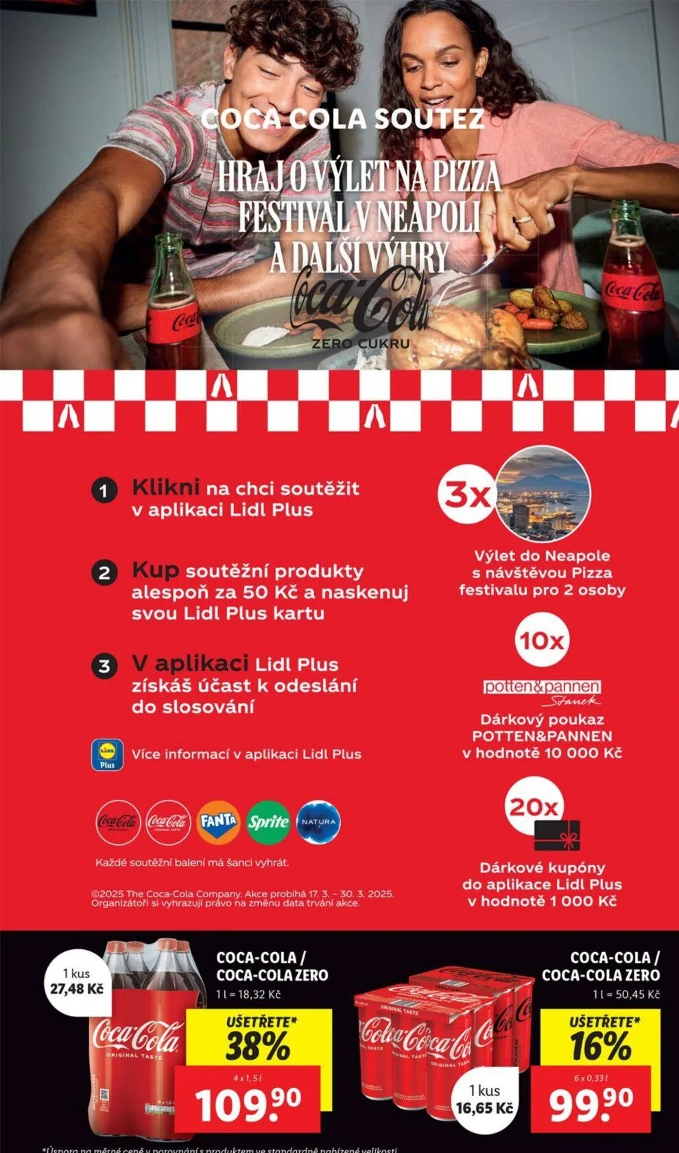 Využijte jedinečnou příležitost soutěžit v aplikaci Lidl Plus! Nakupte soutěžní produkty alespoň za 50 Kč a naskenujte svou Lidl Plus kartu. Každé soutěžní balení má šanci vyhrát skvělé ceny, jako je výlet do Neapole s návštěvou pizza festivalu pro 2 osoby nebo dárkový poukaz Potten&Pannen v hodnotě 10 000 Kč. Akce probíhá od 17. 3. do 30. 3. 2025. Nezapomeňte, že organizátoři si vyhrazují právo na změnu data trvání akce. Více informací naleznete v aplikaci Lidl Plus. Nepropásněte tuto skvělou příležitost!