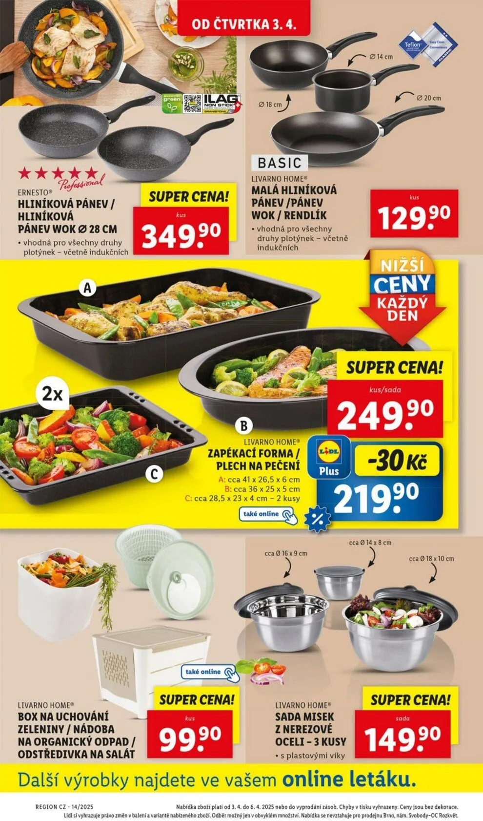 Od čtvrtka 3.4. v Lidlu najdete skvělou nabídku produktů pro vaši kuchyni. Mezi nimi je malá hliníková pánev a rendlík, které jsou vhodné pro všechny druhy plotýnek, včetně indukčních. Dále nabízíme hliníkovou pánev wok o průměru 28 cm.