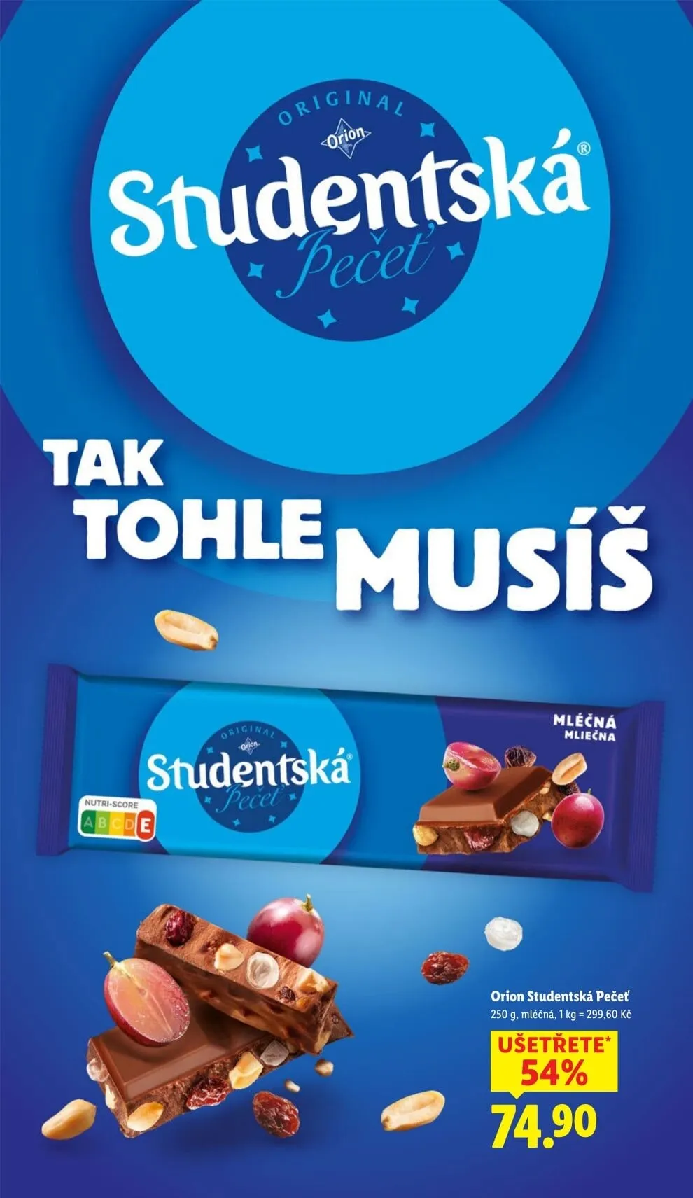 Orion Studentská Pečeť 250 g, mléčná, 1 kg = 299,60 Kč 74,90 Kč