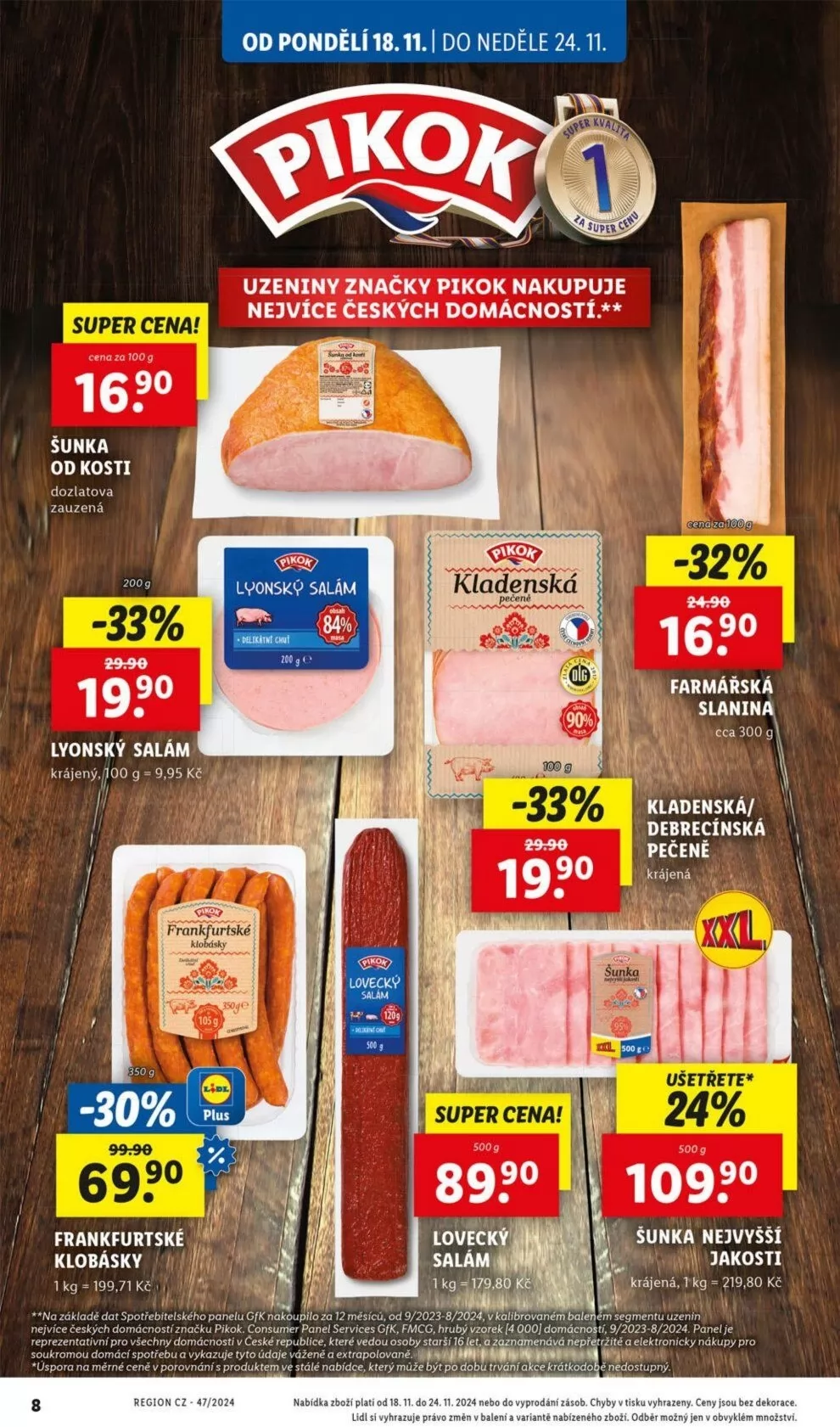 Od pondělí 18.11. do neděle 24.11. máte možnost zakoupit široký výběr uzenin značky Pikok za super ceny!