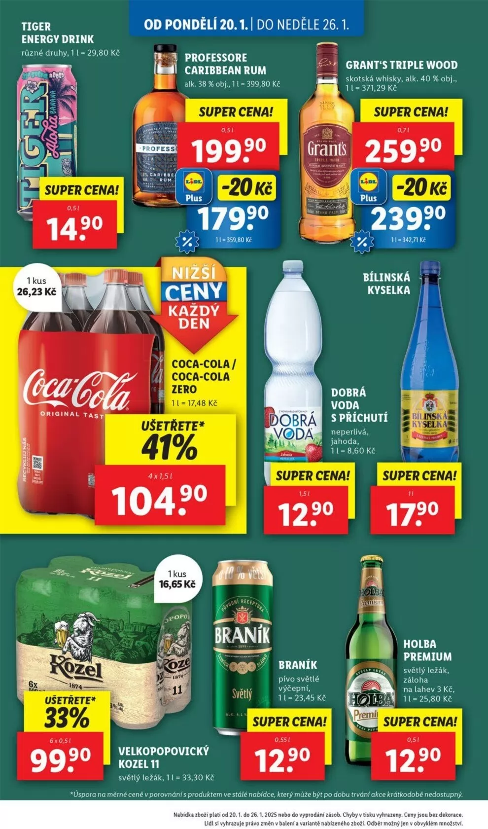 V letáku obchodu Lidl najdete skvělé nabídky na různé produkty! Mezi nimi je energetický nápoj Tiger za super cenu 29,80 Kč. Dále si můžete vychutnat karibský rum Professore s alkoholem 38 % za 399,80 Kč, nyní se slevou 20 Kč. Pro milovníky nealkoholických nápojů je tu Coca-Cola Zero za 17,48 Kč.