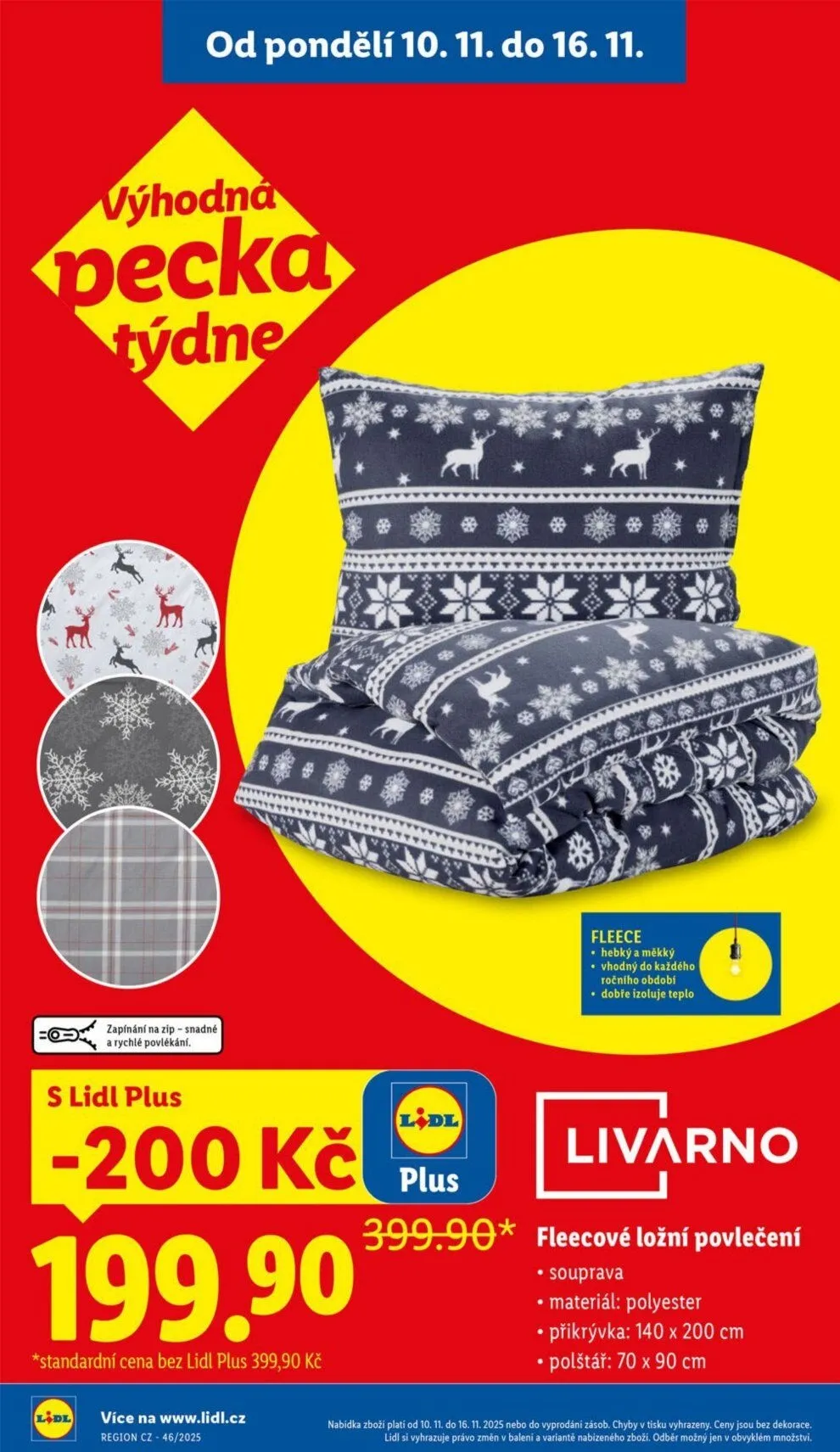 Fleecové ložní povlečení Souprava; Materiál: polyester; Příkrývka: 140 x 200 cm; Polštář: 70 x 90 cm; Cena: 199,90 Kč