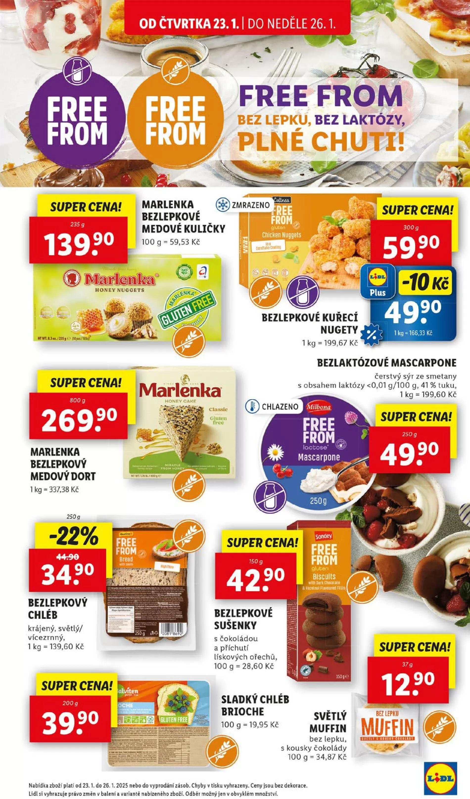 Od čtvrtka 23.1. do neděle 26.1. můžete v Lidlu zakoupit širokou škálu bezlepkových a bezlaktózových produktů za super ceny! Mezi nabídkou najdete bezlepkové medové kuličky Marlenka (100 g za 59,53 Kč) a bezlepkové kuřecí nugety (1 kg za 199,67 Kč).