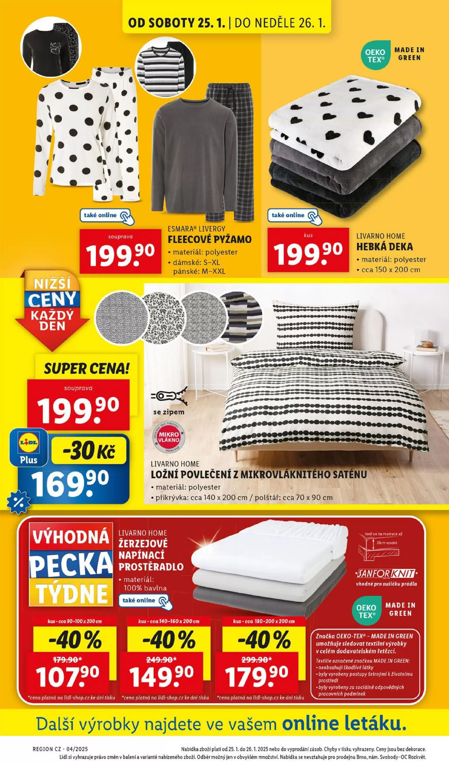 Od soboty 25. ledna do neděle 26. ledna můžete v obchodu Lidl zakoupit skvělé produkty za super ceny! Nabízíme fleecové pyžamo od značky esmara a livergy, vyrobené z polyesteru, dostupné v dámských a pánských velikostech. Cena je 199 Kč za kus.