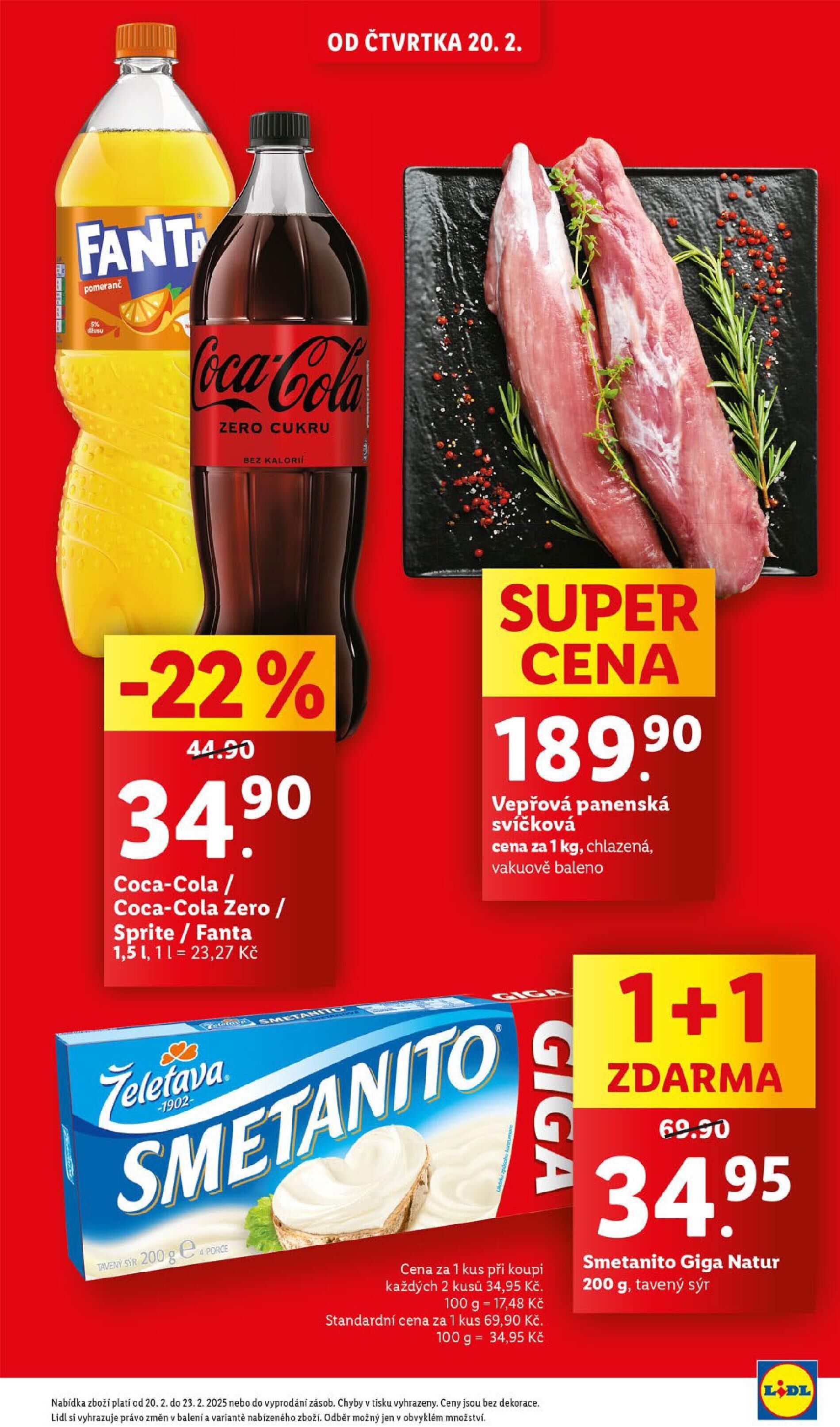 Od čtvrtka 20.2. v obchodech Lidl najdete skvělé nabídky! V akci jsou nápoje jako Coca-Cola, Coca-Cola Zero, Sprite a Fanta, které jsou bez cukru a bez kalorií, nyní za cenu 44,90 Kč za 1,5 litru.