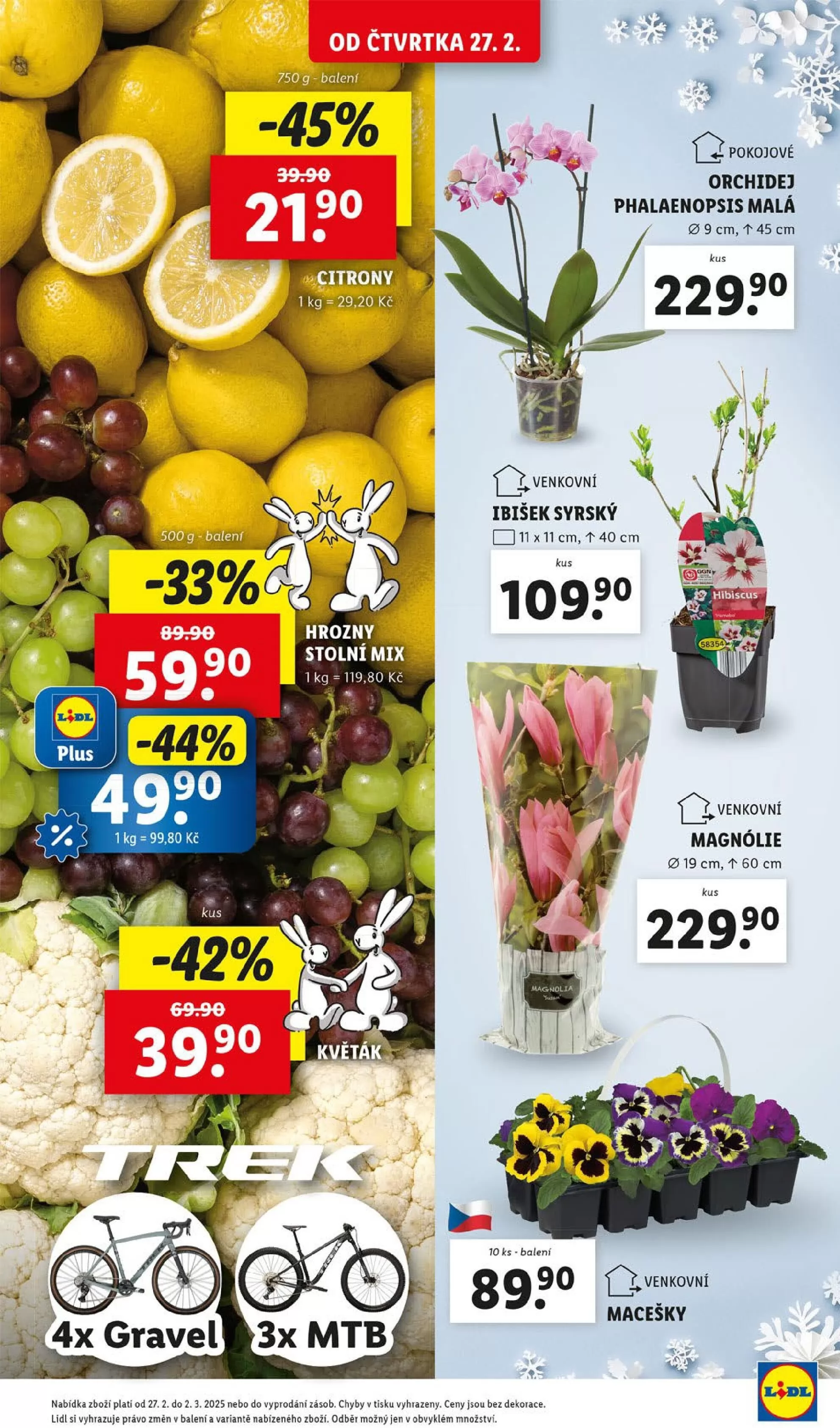 Nabídka platí od 27. 2. do 2. 3. 2025 nebo do vyprodání zásob. Ceny jsou uvedeny bez dekorace a Lidl si vyhrazuje právo na změny v balení a variantách nabízeného zboží. Odběr je možný pouze v obvyklém množství.