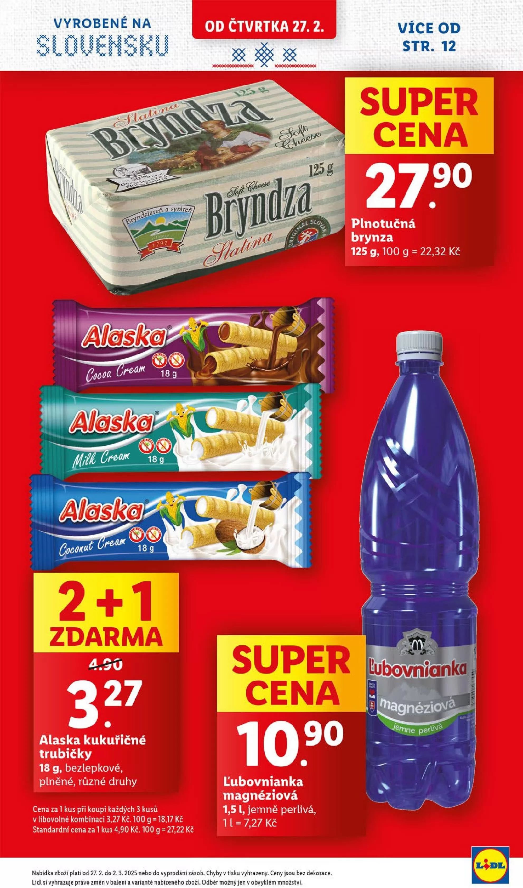 Nabídka platí od 27.2. do 2.3.2025 nebo do vyprodání zásob. Ceny jsou uvedeny bez dekorace a Lidl si vyhrazuje právo na změny v balení a variantách nabízeného zboží.