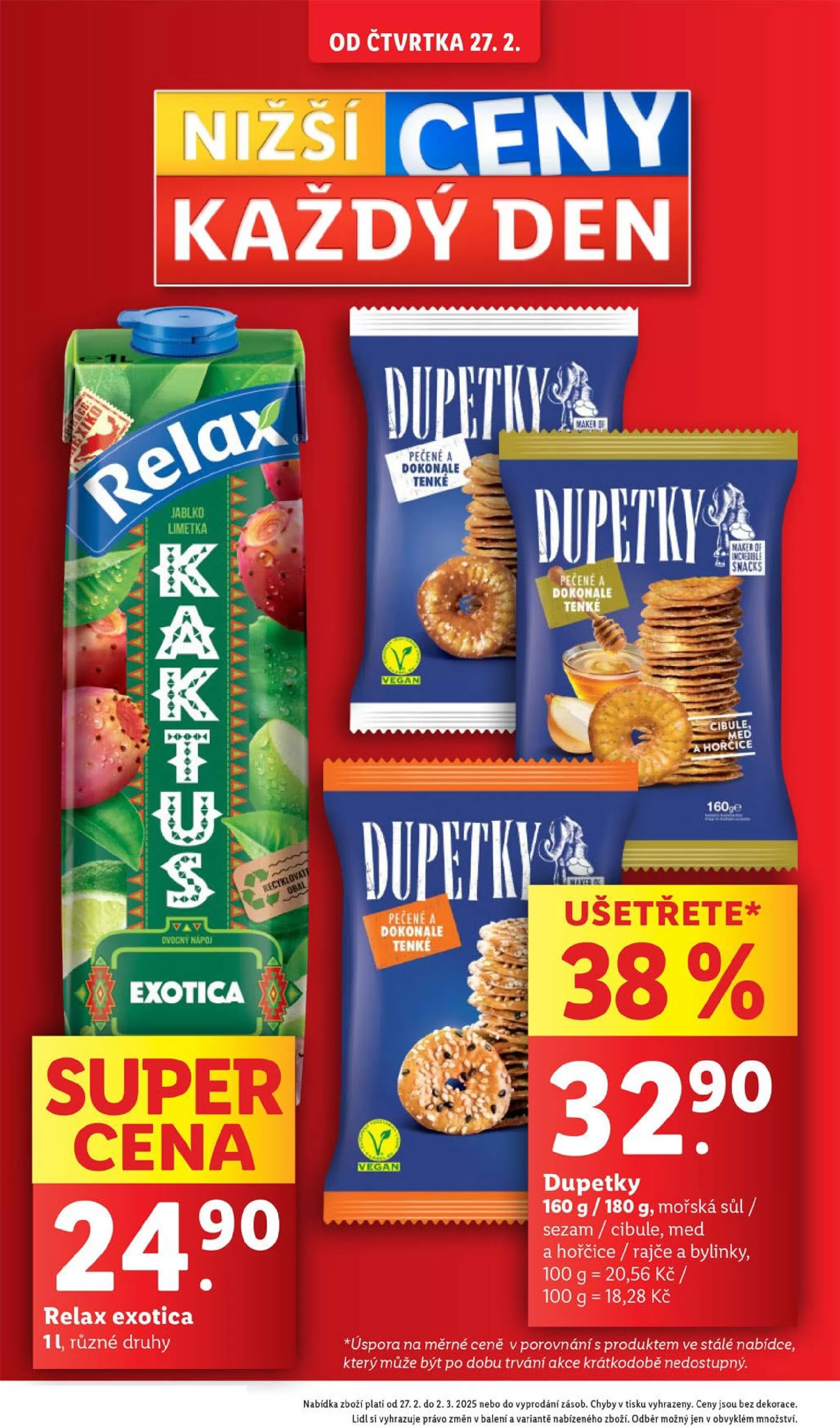 Od čtvrtka 27.2. v obchodě Lidl najdete skvělé akční nabídky! Připravili jsme pro vás produkty za nižší ceny, které potěší každého. Vybírat můžete z různých druhů medu, dupeček s mořskou solí, sezamem, cibulí, medem a hořčicí nebo rajčaty a bylinkami. Ceny začínají již od 20,56 Kč za 100 g. Nezapomeňte, že nabídka platí do 2.3.2025 nebo do vyprodání zásob. Těšíme se na vaši návštěvu!