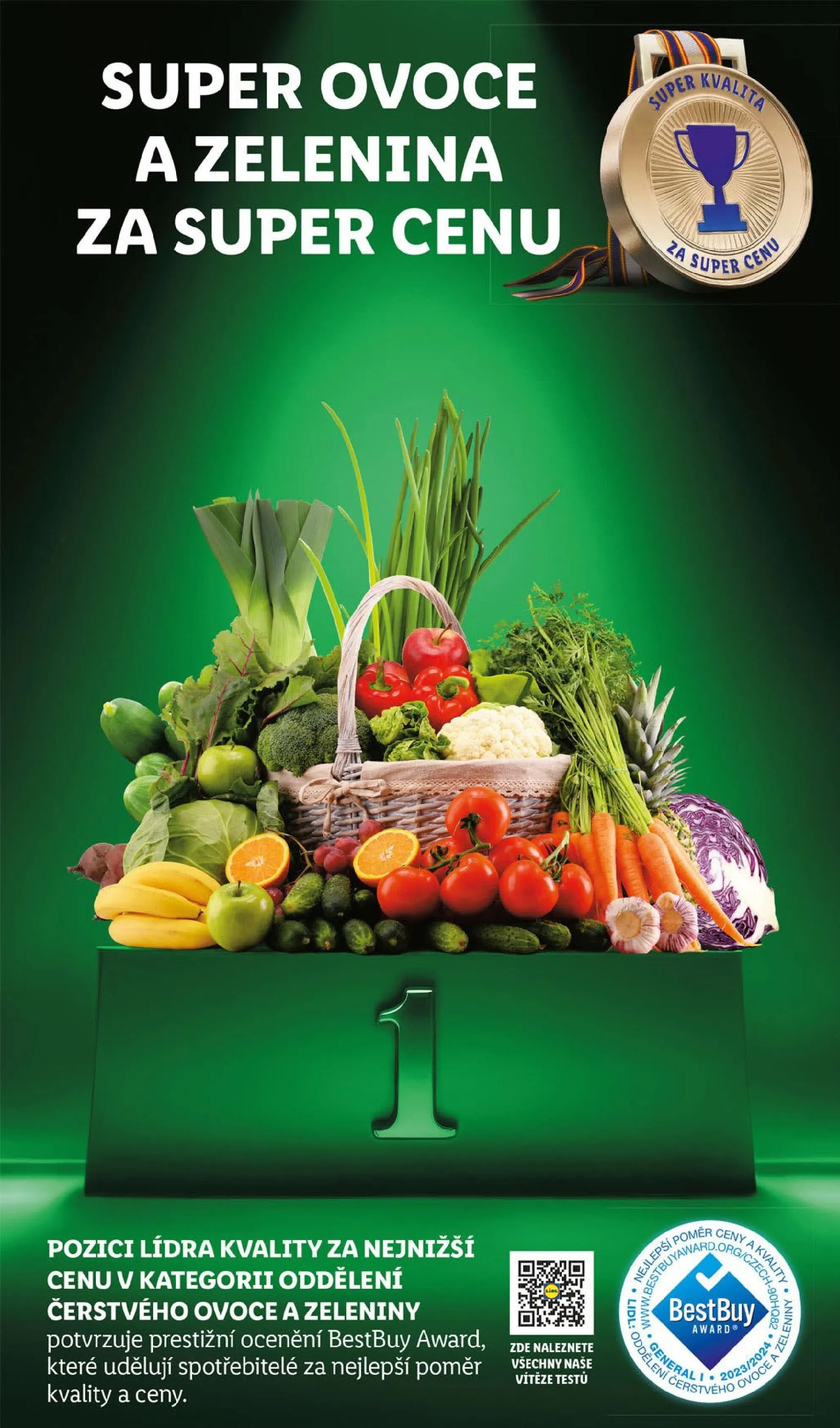 V letáku obchodu Lidl najdete širokou nabídku super ovoce a zeleniny za super ceny. Naše produkty se pyšní prestižním oceněním Best Buy Award, které potvrzuje jejich kvalitu a výhodnou cenu. Přijďte si vybrat čerstvé ovoce a zeleninu, které jsou lídrem v kategorii a užijte si skvělý poměr kvality a ceny. Všechny naše vítězné produkty jsou zde pro vás!