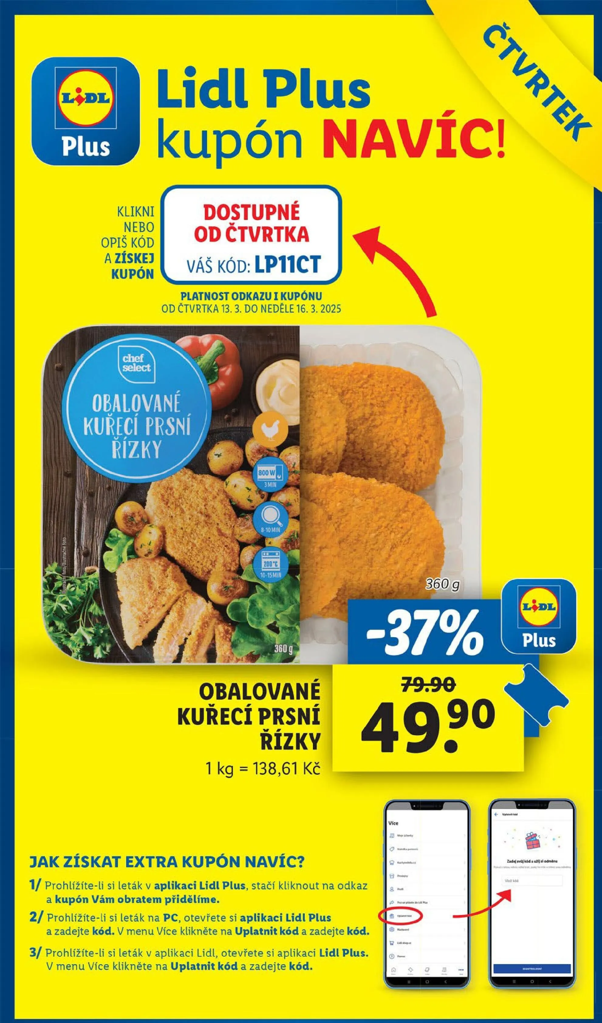 V letáku obchodu Lidl najdete skvělé nabídky, včetně obalovaných kuřecích prsních řízků o hmotnosti 360 g za cenu 138,61 Kč za kilogram. Nezapomeňte využít speciální akci a získejte extra kupón navíc! Stačí kliknout na odkaz v aplikaci Lidl Plus nebo zadat kód lpiict. Akce platí od čtvrtka 13. března do neděle 16. března 2025. Nepropásněte tuto skvělou příležitost!