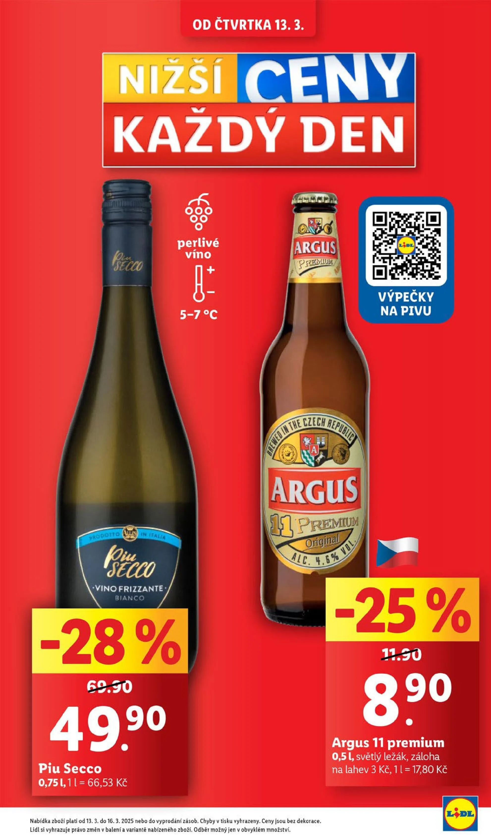 V letáku obchodu Lidl najdete skvělou nabídku produktů, které potěší každého. Od čtvrtka 13. března si můžete zakoupit perlivé víno Frizzante Bianco za cenu 49,90 Kč. Tento osvěžující nápoj je ideální pro různé příležitosti. Dále se můžete těšit na výpečky na pivu značky Argus, které jsou skvělou volbou pro milovníky masa. Nezapomeňte také na světlý ležák Argus 11 Premium, který je k dostání za 17,80 Kč za litr. Nabídka platí do 16. března 2025 nebo do vyprodání zásob. Využijte skvělé ceny a užijte si kvalitní produkty!