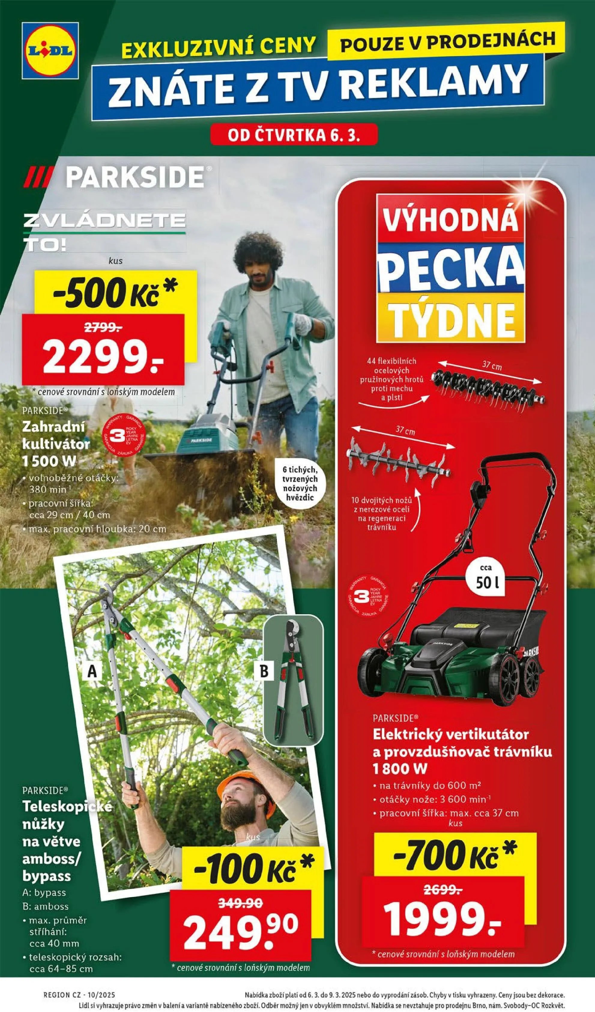 V letáku obchodu Lidl najdete skvělé produkty, které vám usnadní práci na zahradě. Od čtvrtka 6. března si můžete pořídit zahradní kultivátor Parkside za výhodnou cenu 2299 Kč, což je o 500 Kč méně než u srovnatelného modelu. Dále nabízíme teleskopické nůžky na větve s maximálním průměrem stříhání 40 mm a teleskopickým rozsahem 64-85 cm.