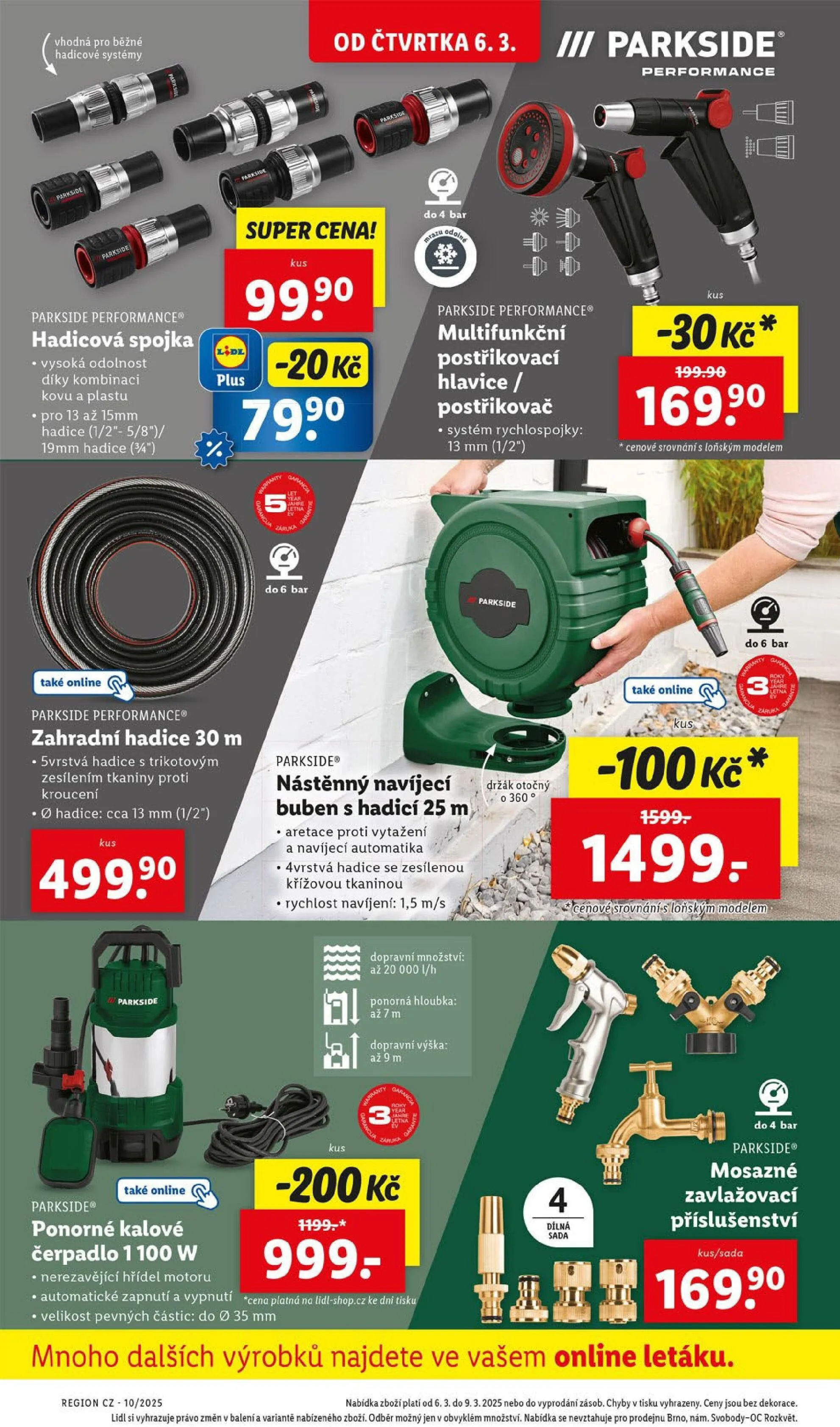 V letáku obchodu Lidl najdete širokou nabídku produktů pro zahradu a domácnost. Od čtvrtka 6.3. můžete zakoupit hadicové spojky s vysokou odolností, které jsou vhodné pro běžné hadicové systémy. Multifunkční postřikovací hlavice s rychlospojkou je ideální pro efektivní zavlažování.