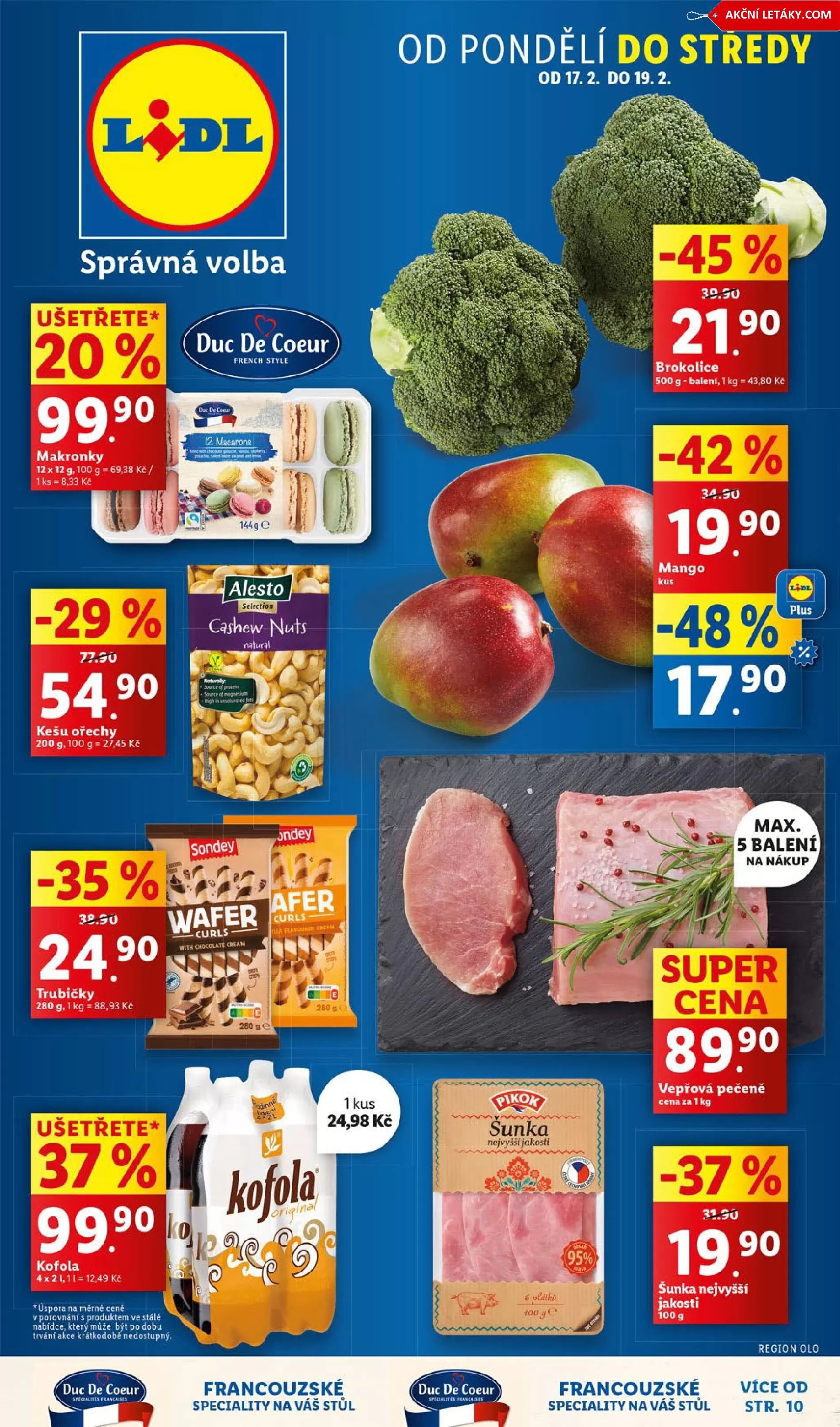Kofola je k dostání za 12,49 Kč a francouzské speciality, jako je šunka nejvyšší jakosti, za 21,90 Kč. Mango můžete pořídit za 17,90 Kč. Využijte super ceny a nakupte maximálně 5 balení vybraných produktů. Navštivte Lidl a objevte skvělé nabídky!