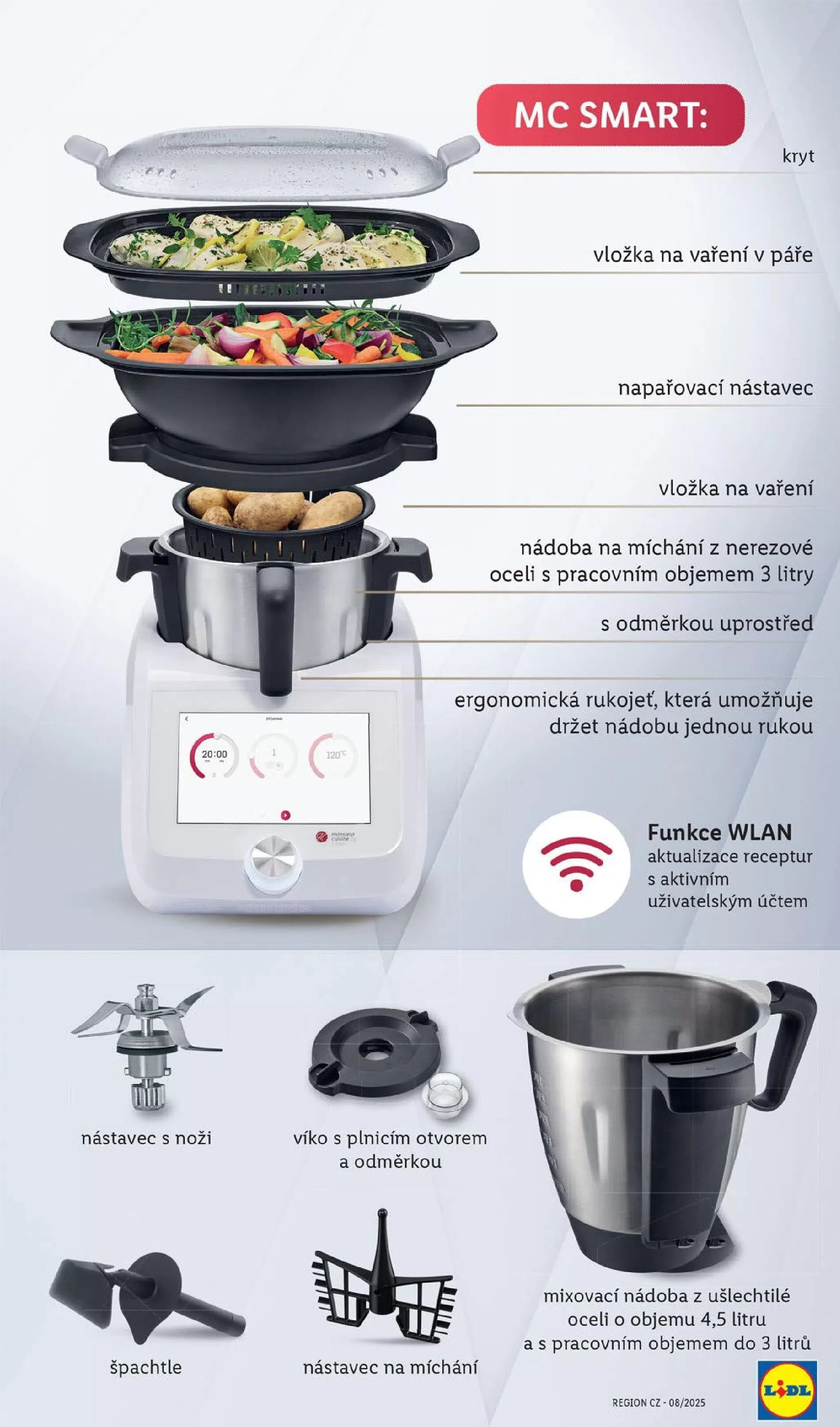 V letáku obchodu Lidl najdete širokou nabídku produktů, které usnadní vaření a přípravu pokrmů. Mezi hlavními položkami se nachází multifunkční mixér s nástavcem s noži a špachtlí, který je ideální pro přípravu různých pokrmů. Dále je k dispozici kryt a vložka na vaření v páře, což umožňuje zdravější přípravu jídla.