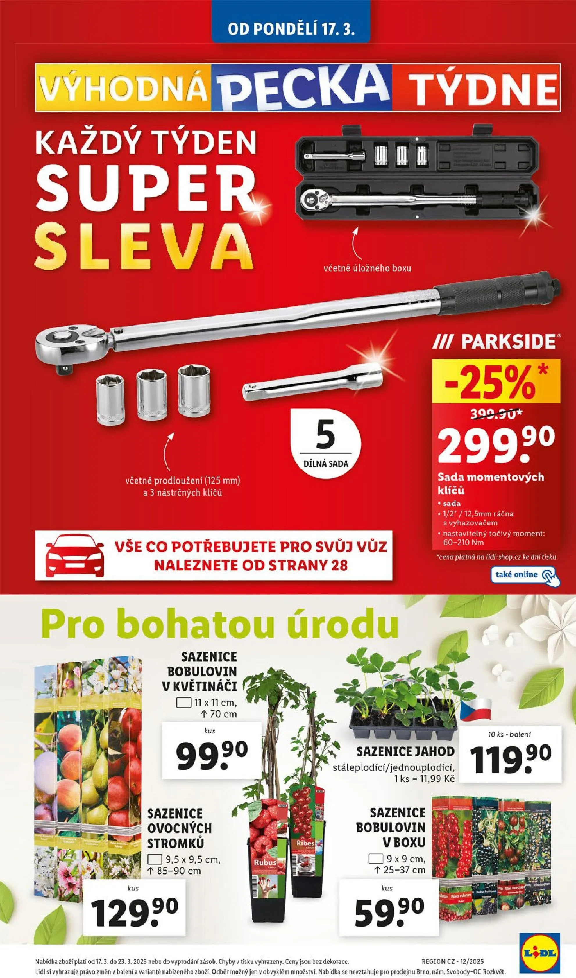 V letáku obchodu Lidl najdete skvělé nabídky, které platí od pondělí 17. března. Mezi produkty se objevuje dílná sada, která obsahuje vše potřebné pro váš vůz, včetně prodloužení a tří nástrčných klíčů. Sada momentových klíčů s ráčnou a nastavitelným točivým momentem je k dispozici za skvělou cenu 299 Kč.