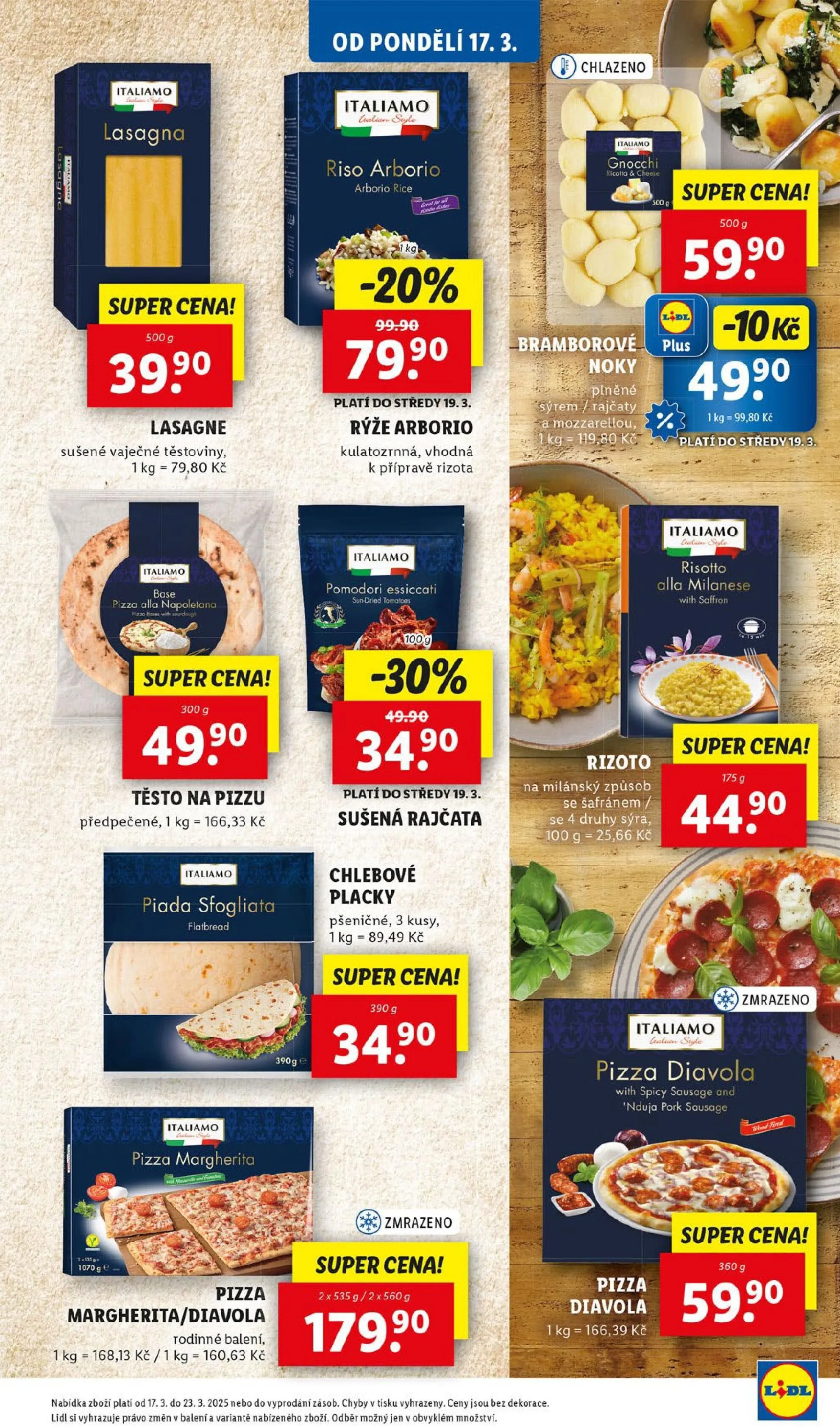 Na závěr si nenechte ujít rizoto alla milanese se šafránem a pizzu Diavola s pikantní klobásou. Akce platí do 19. března nebo do vyprodání zásob. Navštivte Lidl a objevte chutě Itálie!