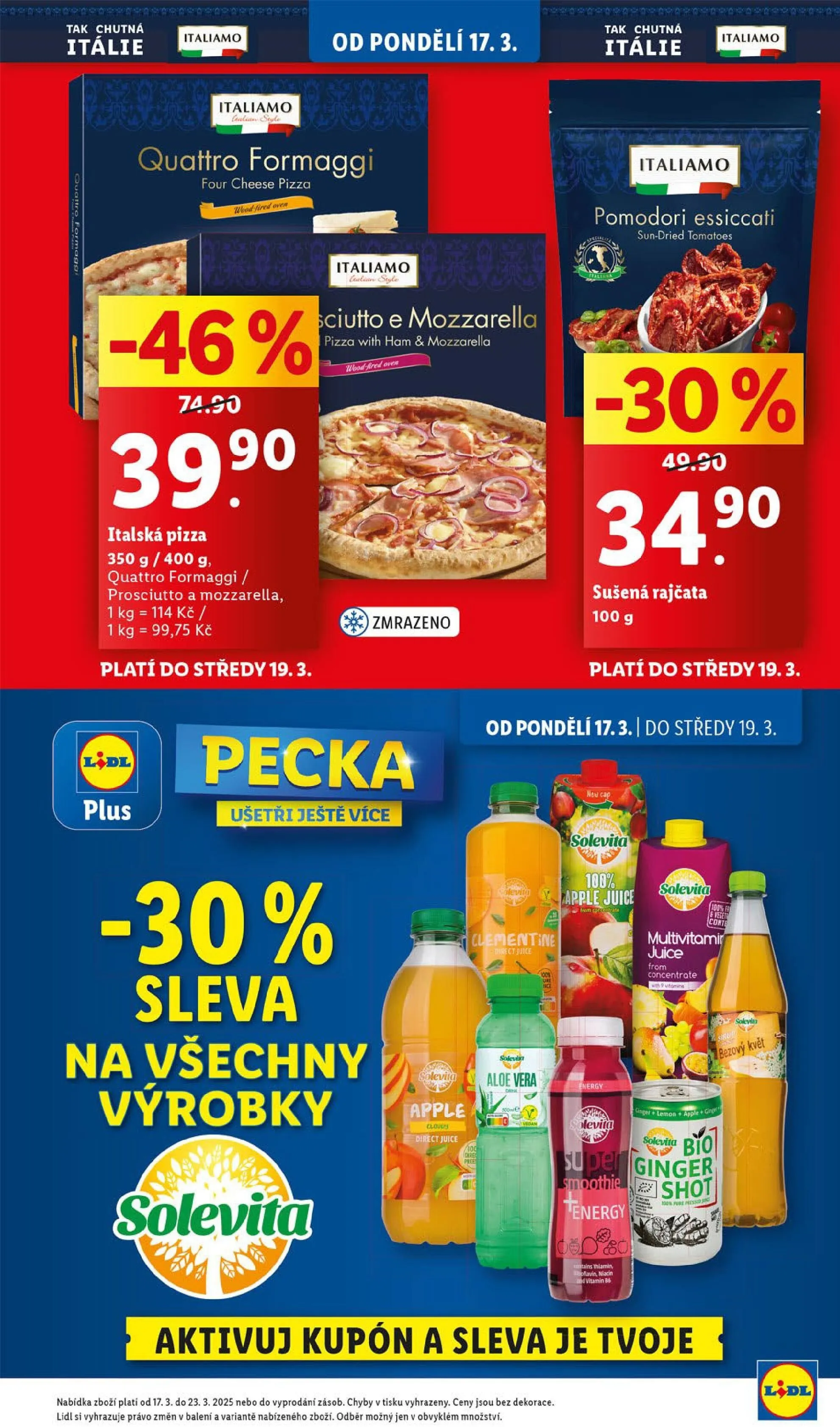 Nezapomeňte také využít slevy na všechny výrobky značky Solevita, které platí od 17. do 19. března. Akce platí do vyprodání zásob, tak neváhejte a navštivte Lidl!