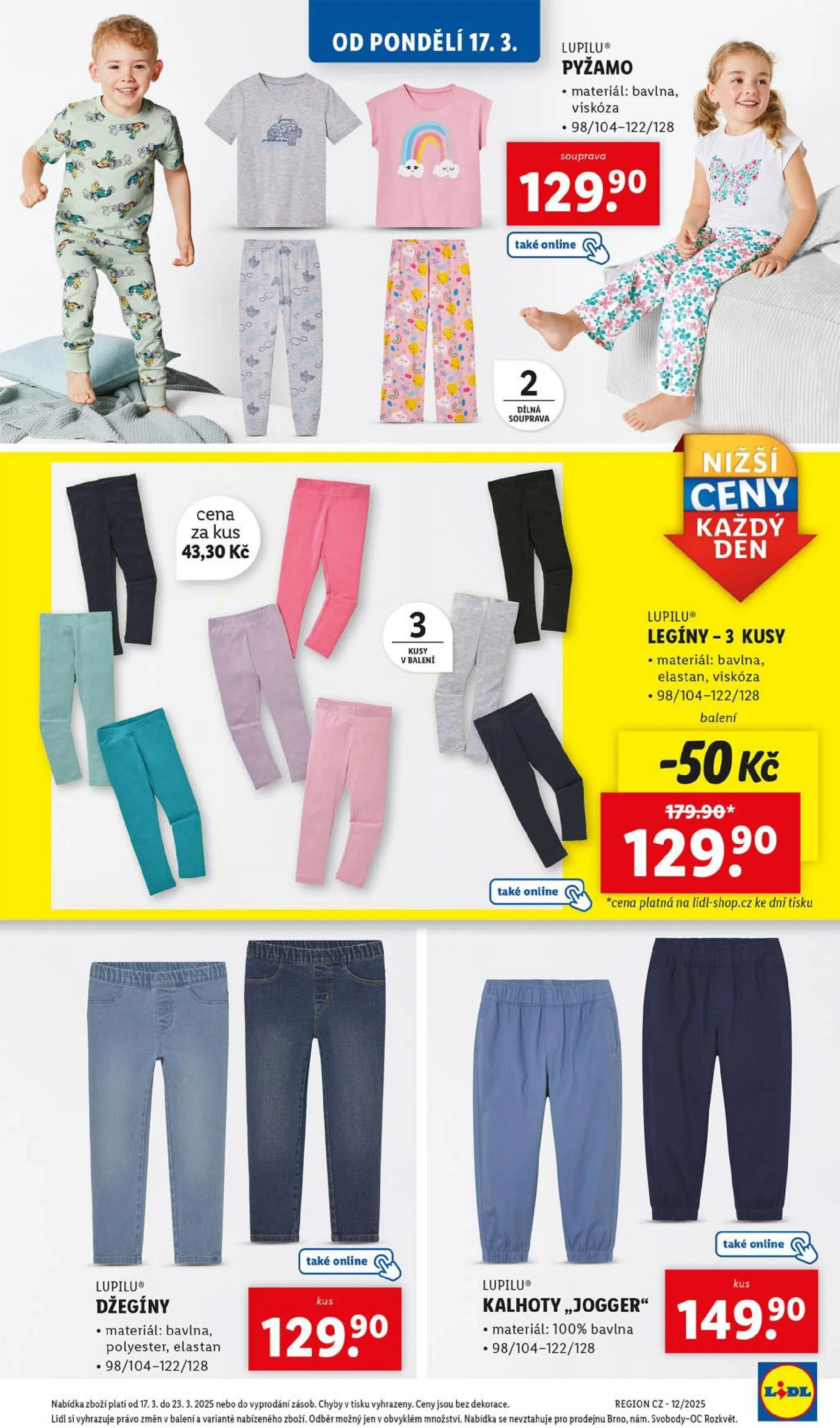 Od pondělí 17. března v obchodě Lidl najdete skvělé produkty značky Lupilu. Nabízíme pyžamo vyrobené z bavlny a viskózy v velikostech 98/104 až 122/128 za cenu 129 Kč. Dále máme dílnou soupravu za 43,30 Kč za kus.