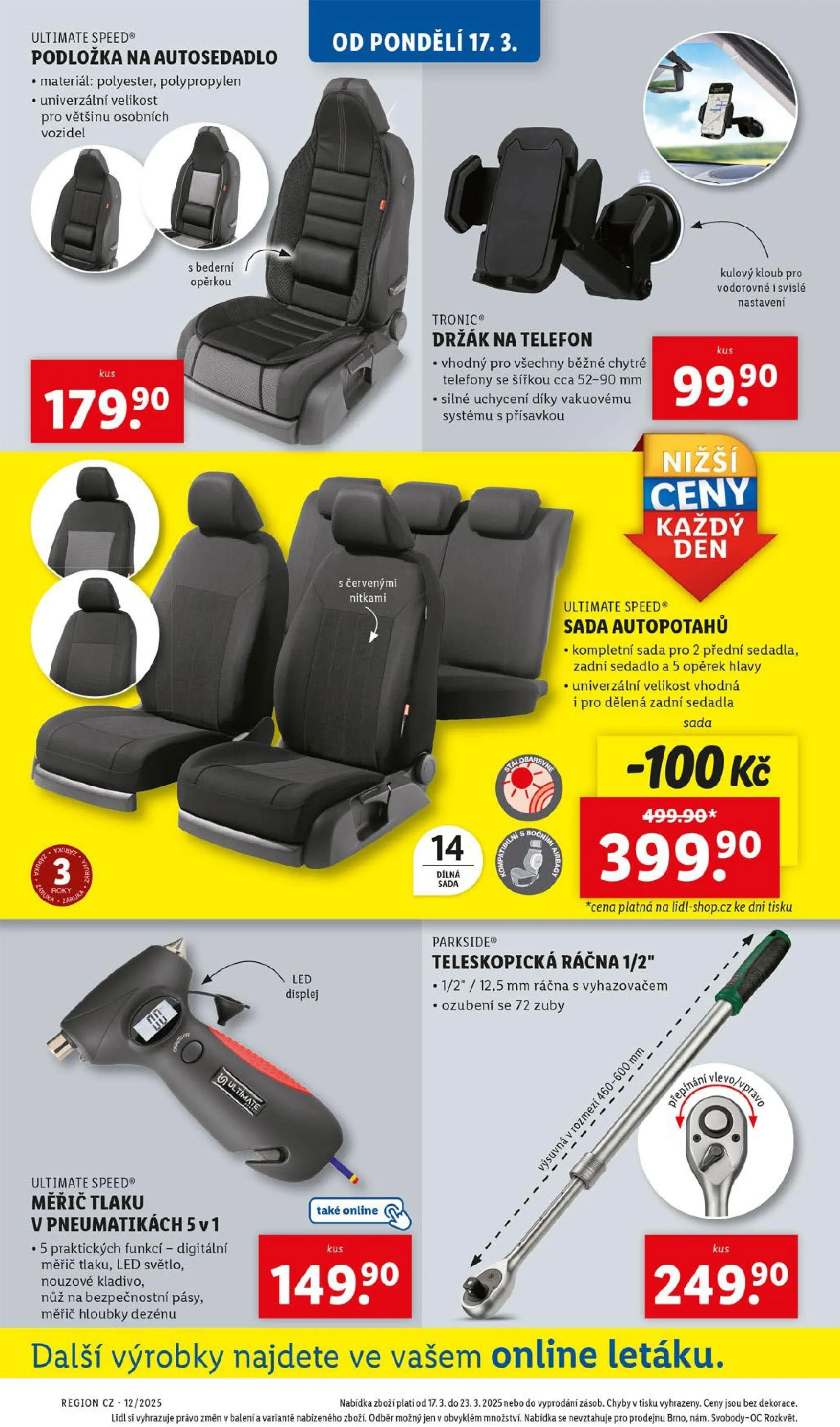 V letáku obchodu Lidl najdete širokou nabídku produktů pro vaše auto a domácnost. Mezi novinkami je podložka na autosedadlo z polyesteru a polypropylenu, která se hodí do většiny osobních vozidel a nabízí bederní opěrku. Dále je k dispozici měřič tlaku v pneumatikách s pěti praktickými funkcemi, včetně digitálního měření a nouzového kladiva.